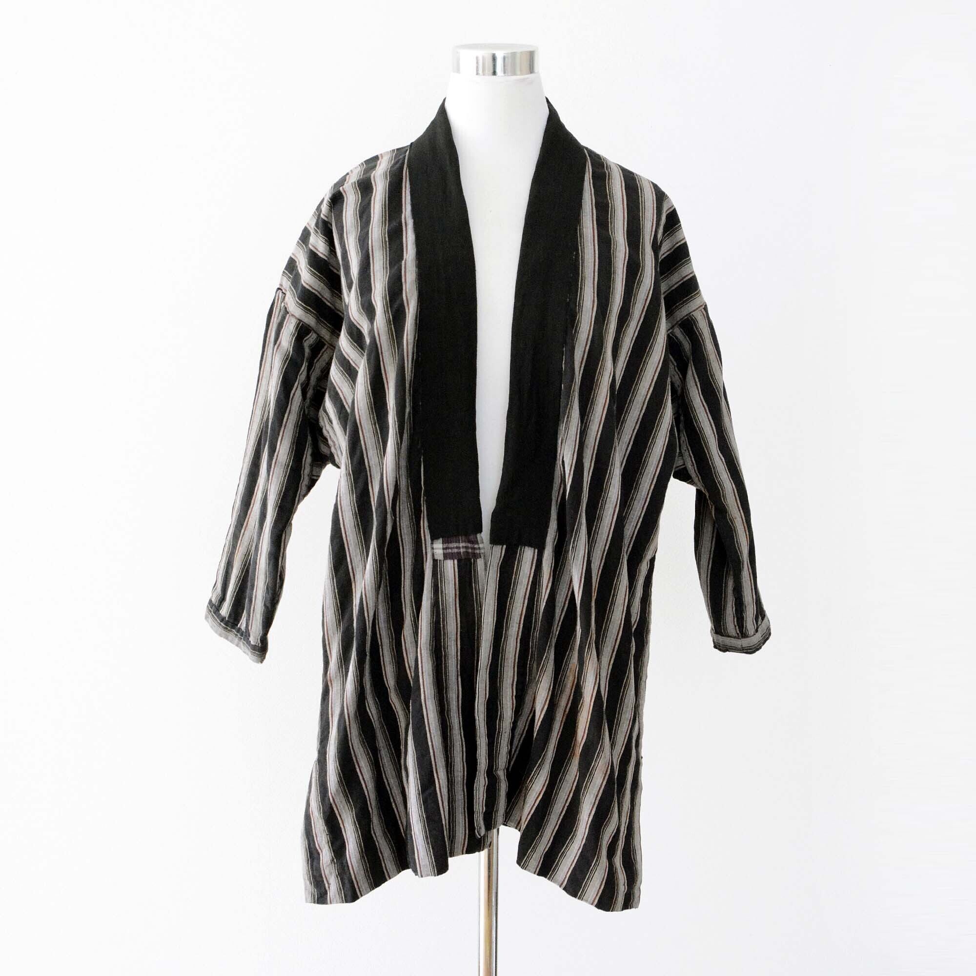 野良着 細袖 着物 木綿 縞模様 ジャパンヴィンテージ 昭和 | Noragi Jacket Men Kimono Cotton Stripe Japan Vintage