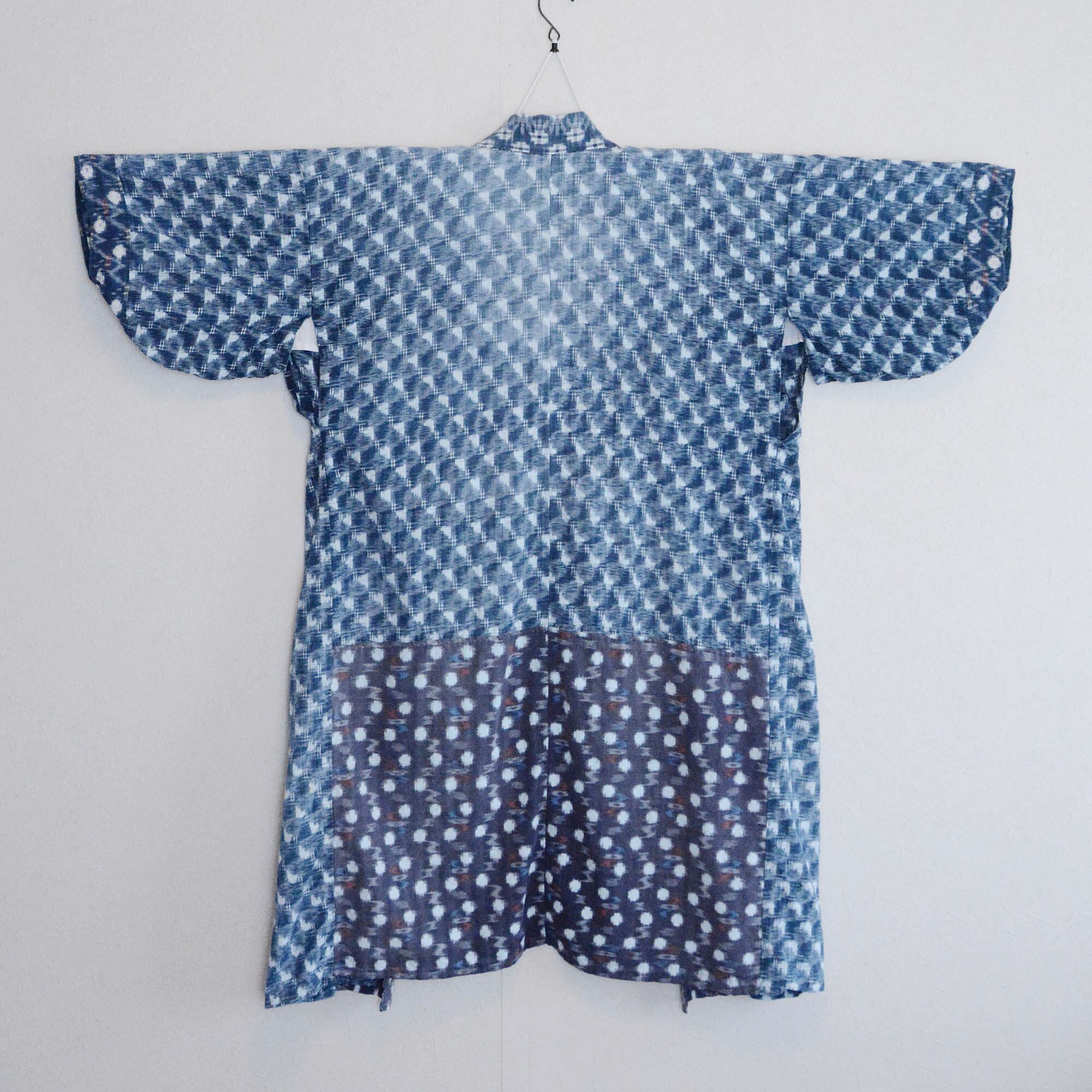 絣 着物 藍染 木綿 クレイジーパターン 長着 ジャパンヴィンテージ 昭和 | Kasuri Fabric Indigo Kimono Robe Long Crazy Pattern Japan Vintage