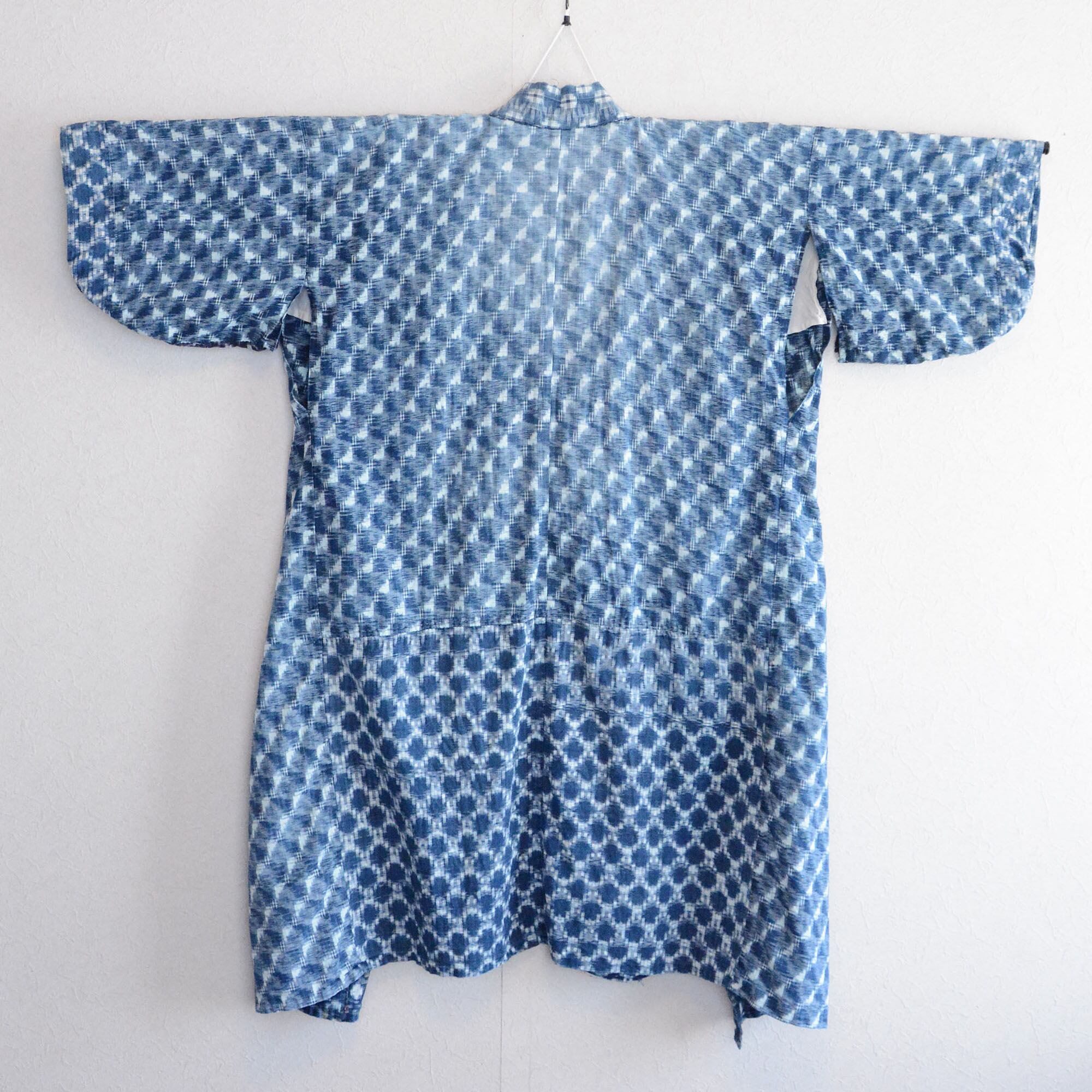 着物 藍染 絣 生地 木綿 クレイジーパターン ジャパンヴィンテージ 昭和 | Indigo Kimono Robe Long Crazy Pattern Kasuri Fabric Japan Vintage