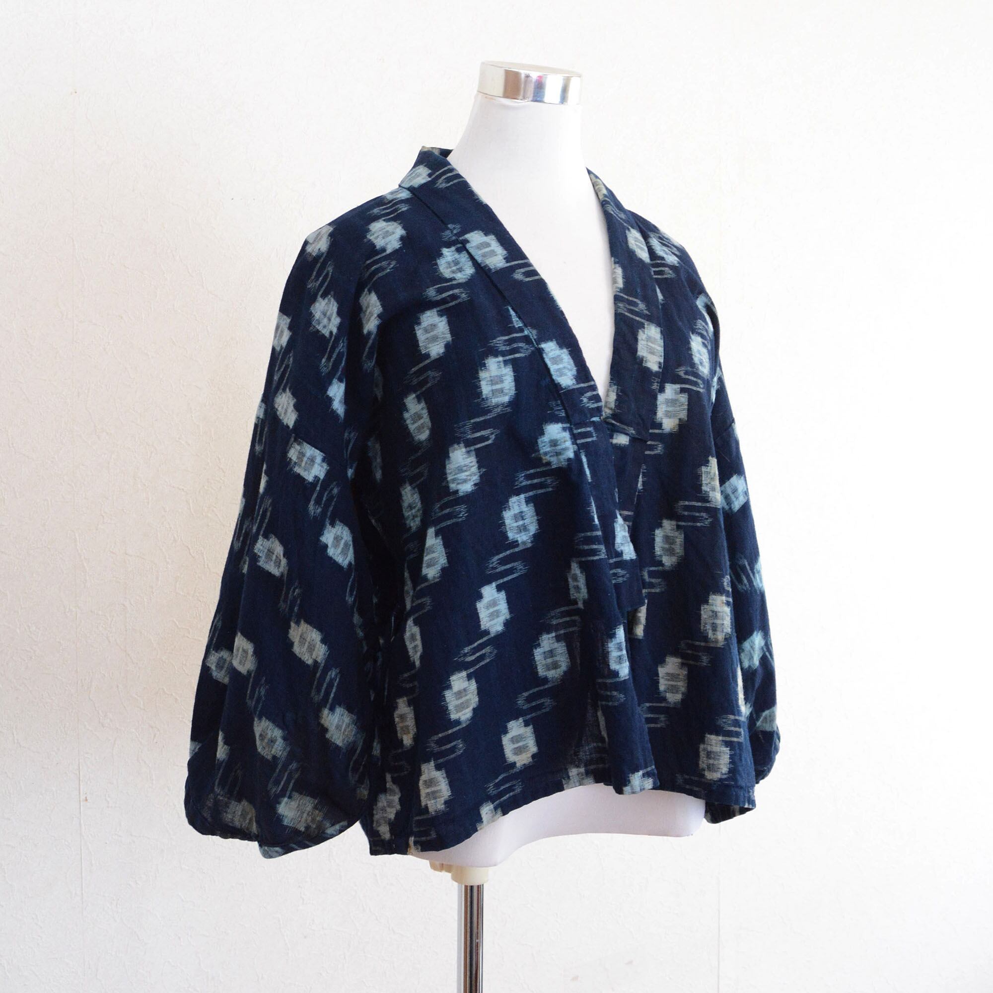 上っ張り 野良着 藍染 絣 着物 木綿 ジャパンヴィンテージ 昭和中期 | Uwappari Noragi Jacket Indigo Kimono Cotton Kasuri Fabric Japan Vintage