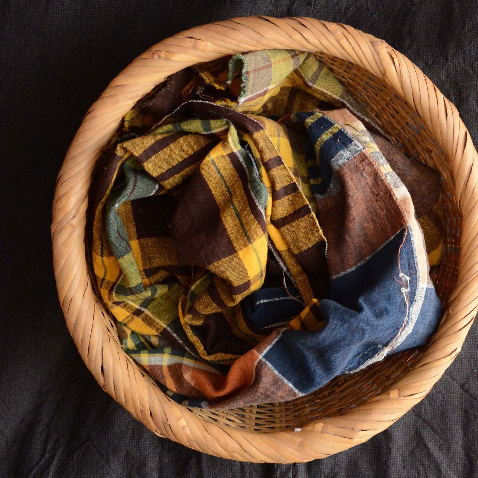 古布 木綿 布団皮 リメイク素材 格子模様 ジャパンヴィンテージ 昭和レトロ ファブリック テキスタイル | japanese fabric cotton vintage futon cover scarf checked pattern