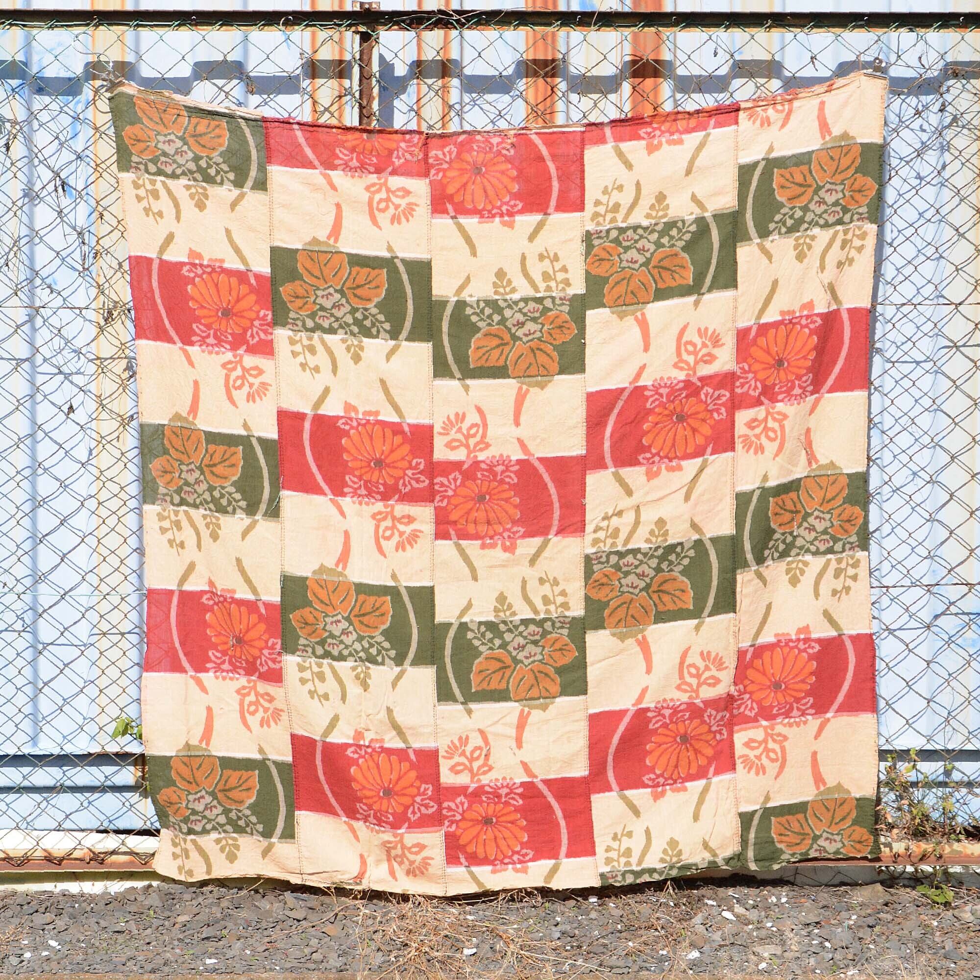古布木綿布団皮ほどき花柄ジャパンヴィンテージファブリックテキスタイルリメイク素材 | japanese fabric vintage cotton floral pattern futon cover unravel