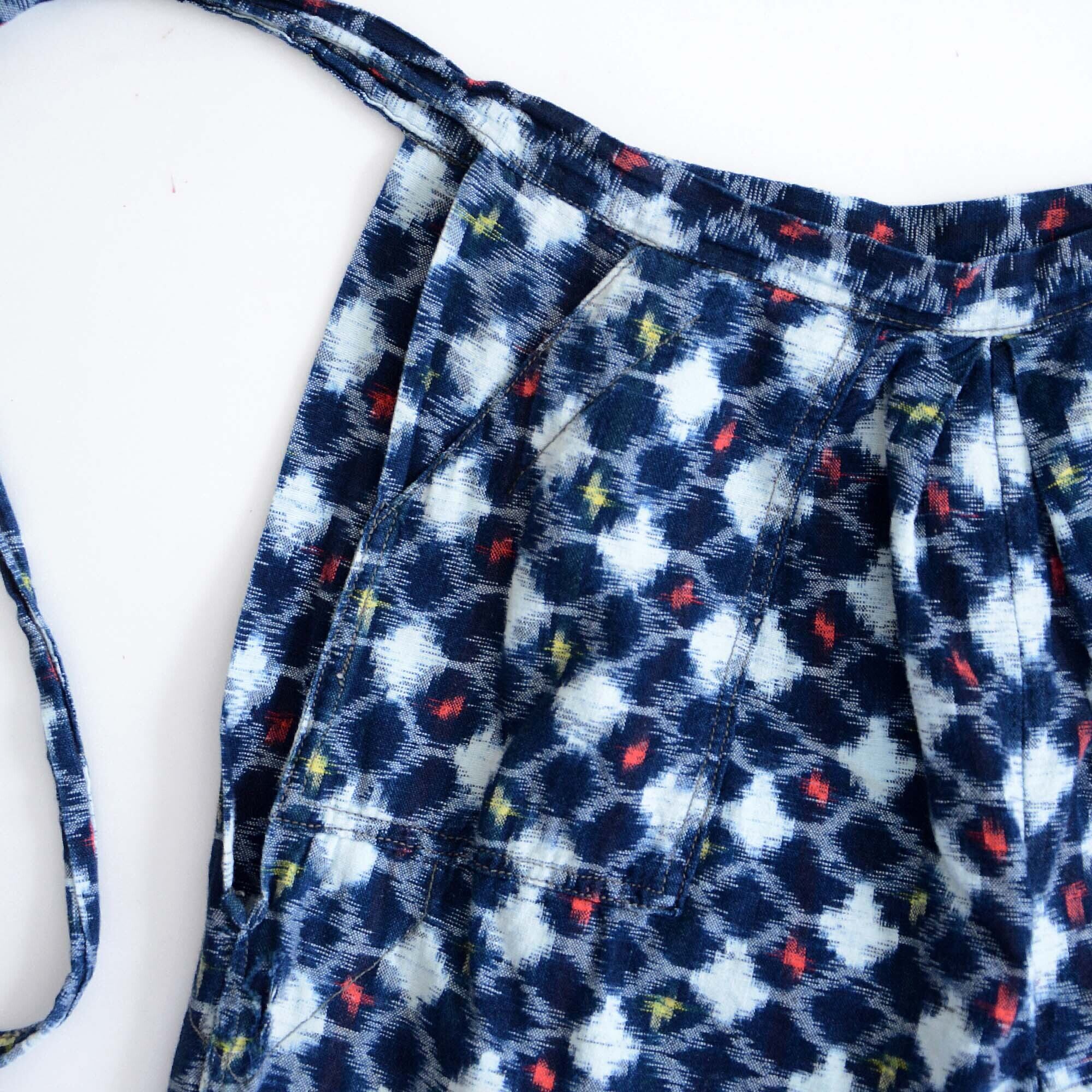 The pockets on only one side of the front and the reinforced double fabric on the back of the front are typical Monpe details.