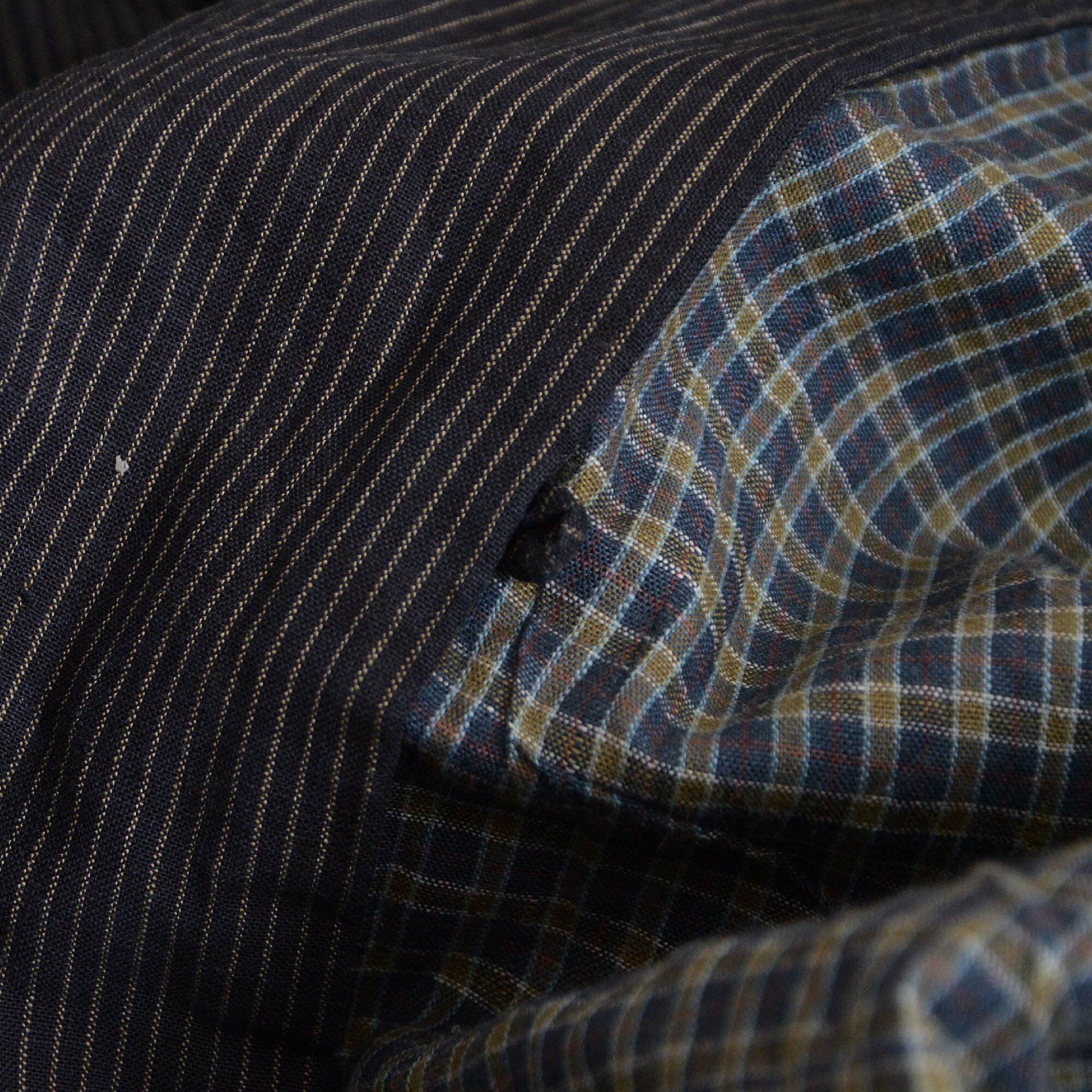 素晴らしい裏面のクレイジーパターン仕立てと、シンプルな表面の縞模様生地のコントラストが素晴らしい羽織。