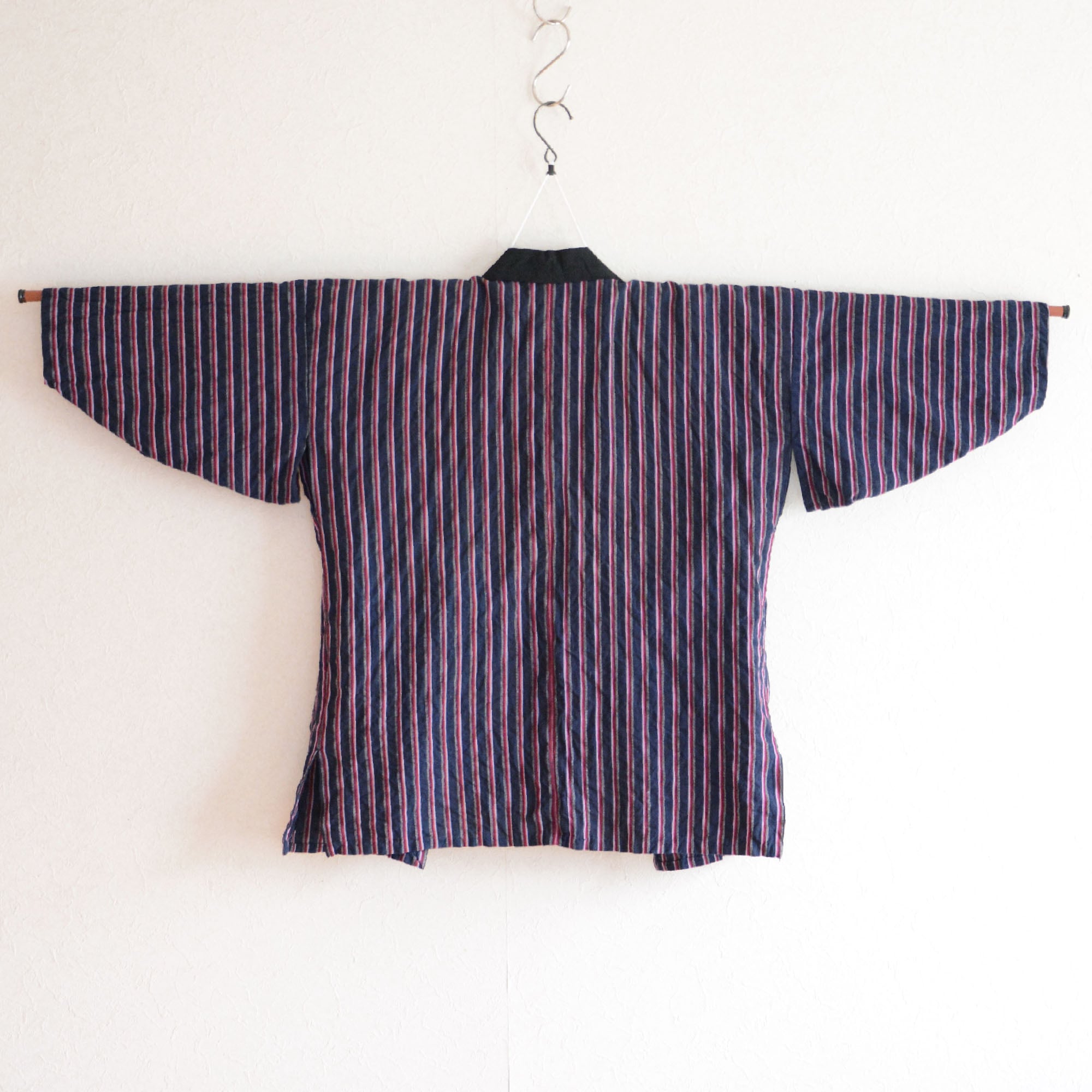 野良着古着藍染木綿着物手ぬぐい縞模様ジャパンヴィンテージリメイク素材昭和 | noragi jacket indigo kimono cotton stripe Japan vintage tenugui