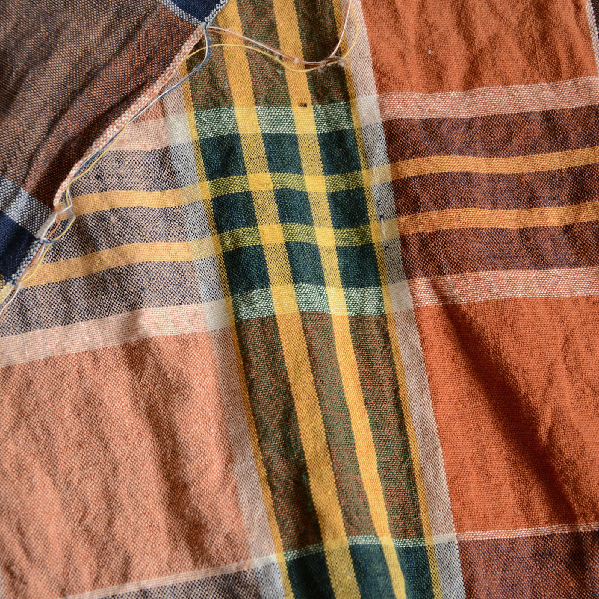 布団皮を解いた物で、生地は手織り、天然染料で染められており、色褪せた色合いやダメージ、生地の質感がとても良いです。
