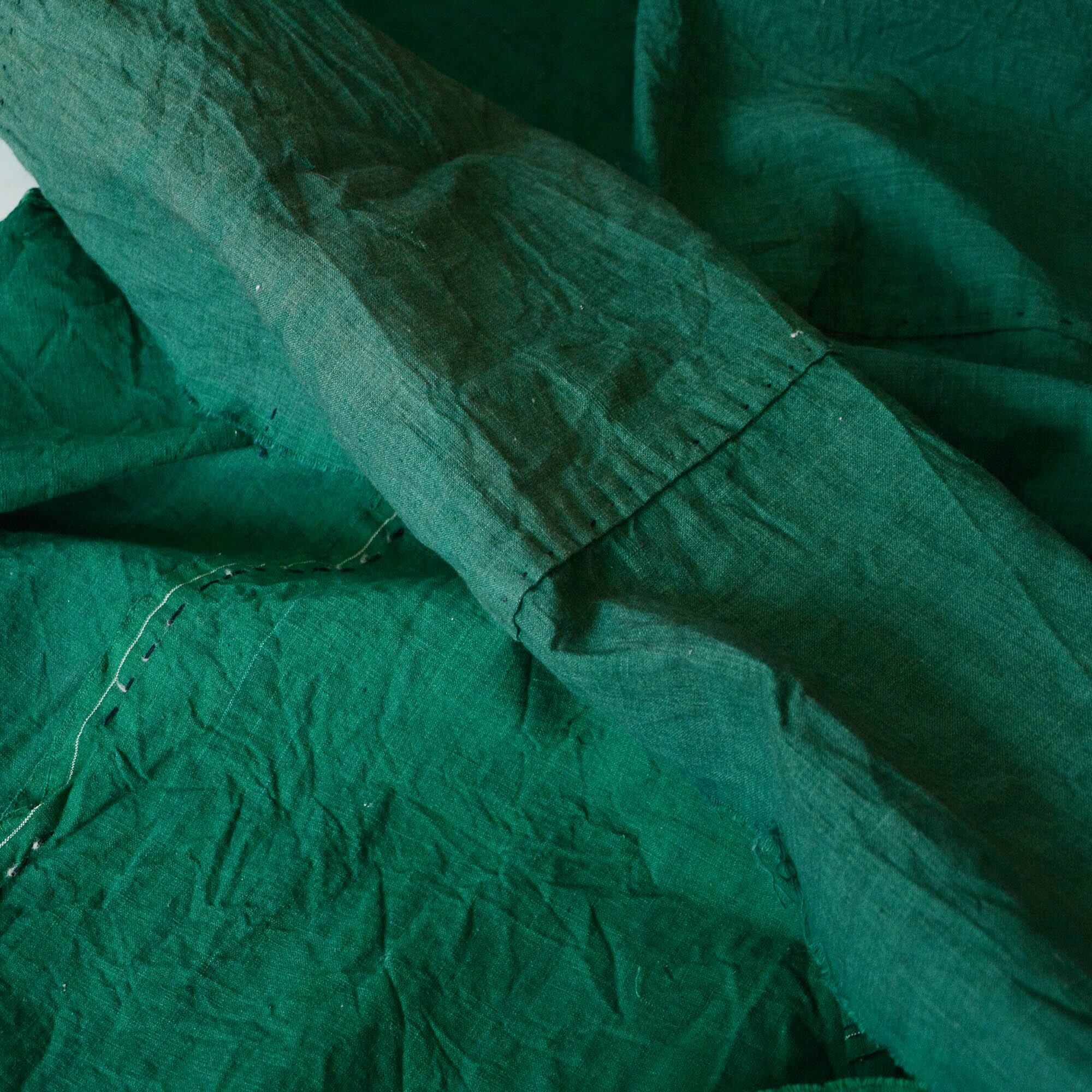 古布木綿緑無地布団皮解き5幅ジャパンヴィンテージファブリックテキスタイルリメイク素材 | japanese fabric vintage cotton green plain futon cover textile