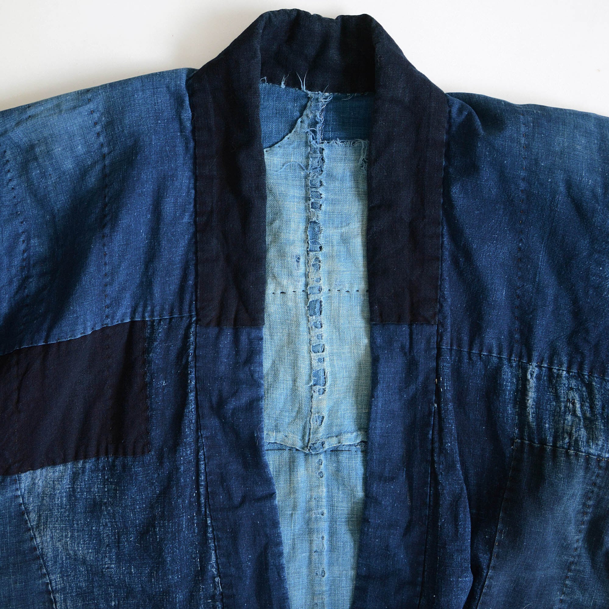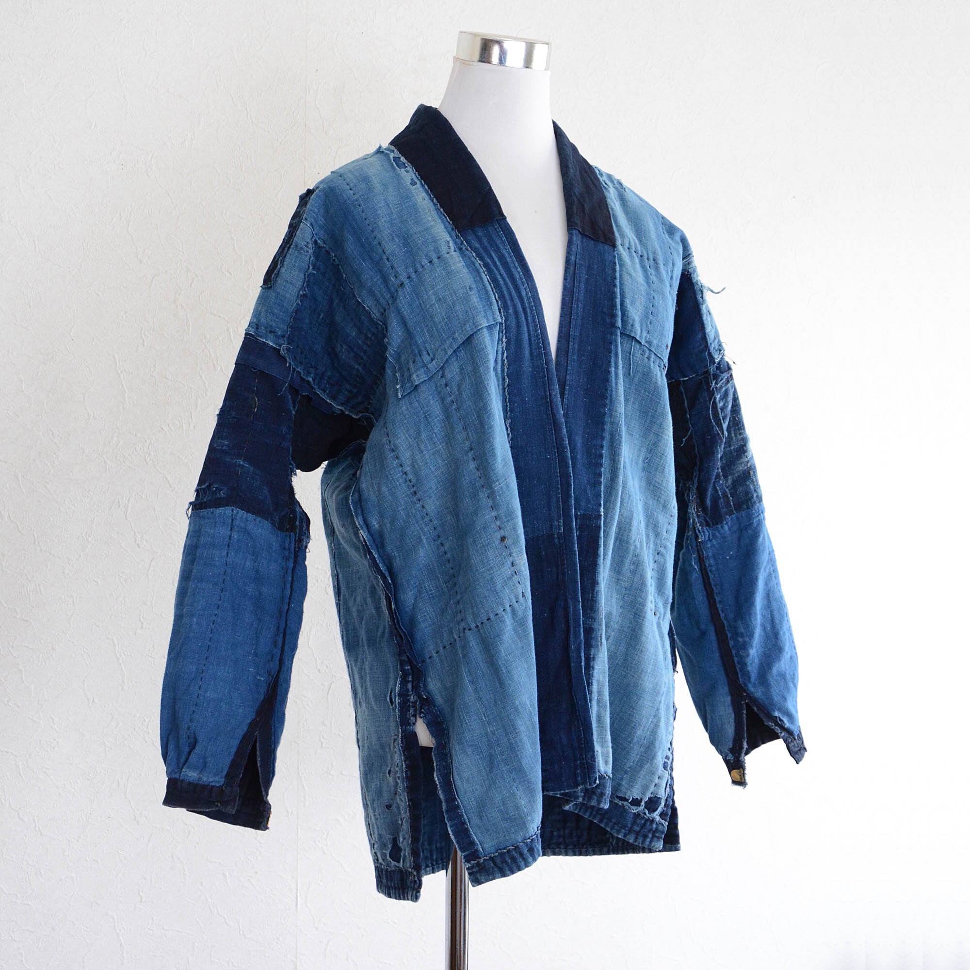 襤褸野良着藍染刺し子つぎはぎジャパンヴィンテージ古着鉄砲袖こはぜクレイジーパターン | boro noragi jacket sashiko indigo kimono cotton crazy pattern Japan vintage gun sleeve