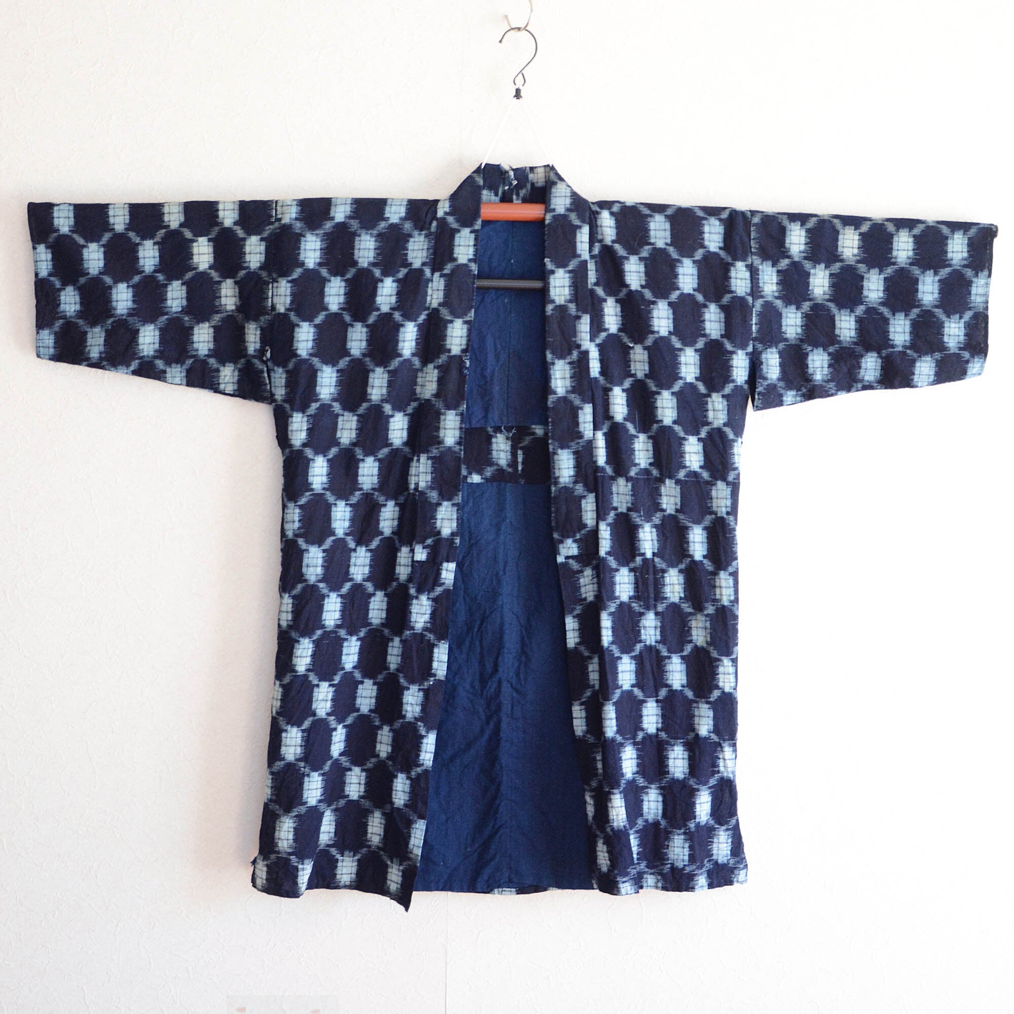 野良着藍染絣木綿着物古布ジャパンヴィンテージリメイク素材昭和 | noragi jacket indigo kimono cotton kasuri fabric japan vintage