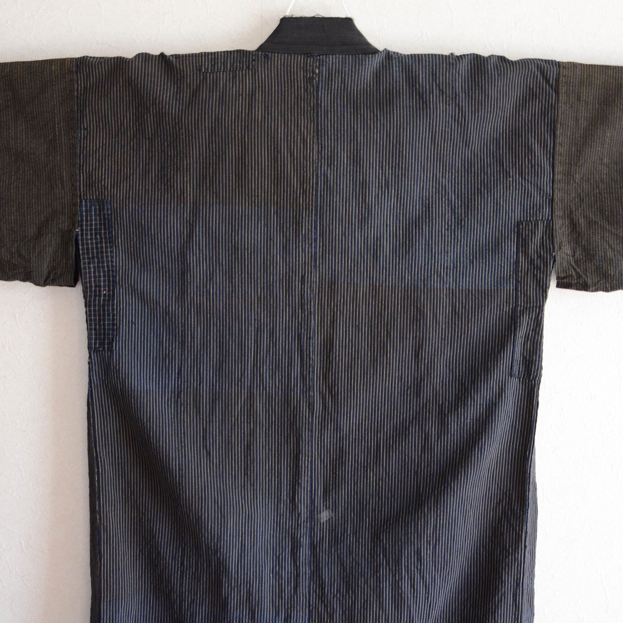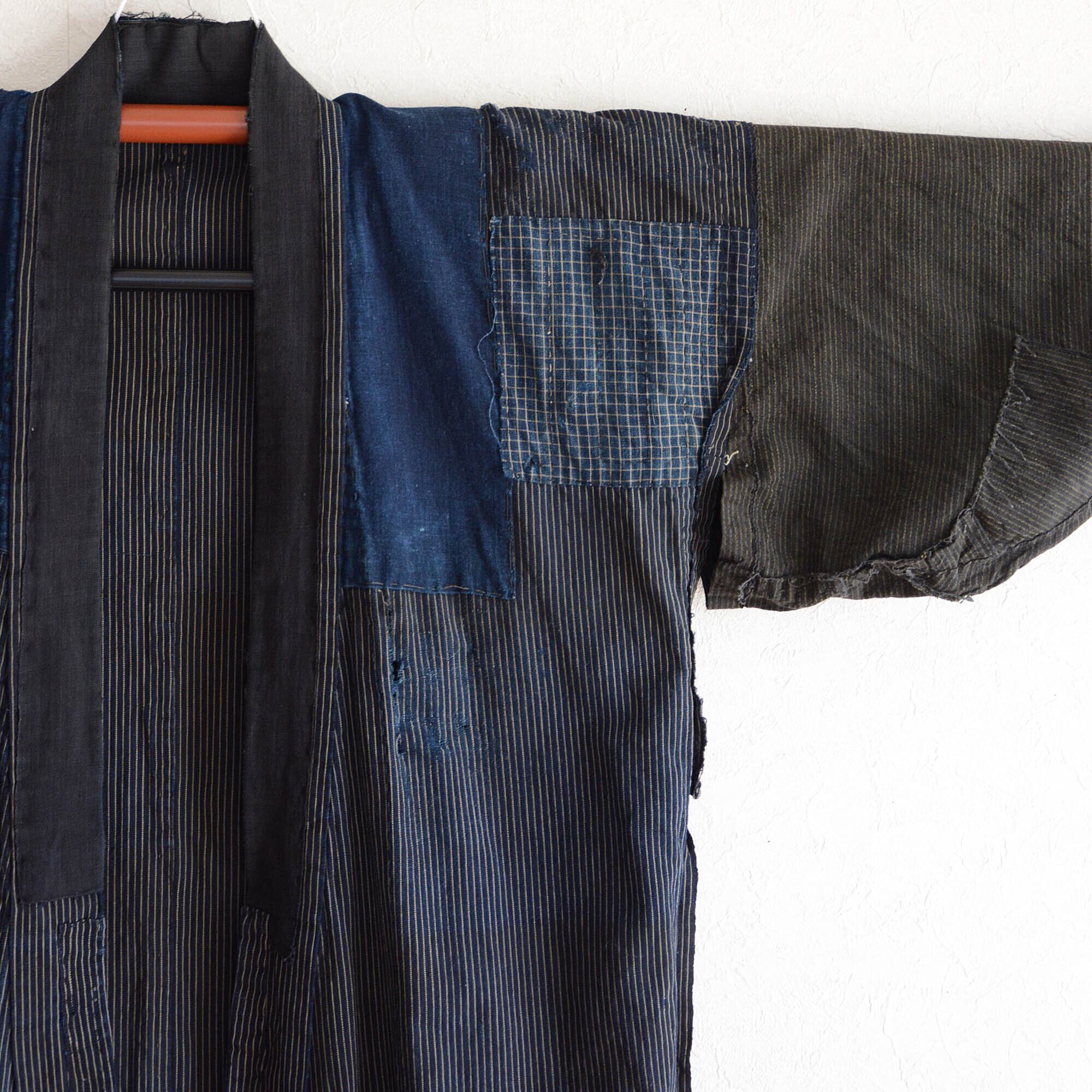 襤褸 藍染 着物 ローブ 木綿 つぎはぎ クレイジーパターン ジャパンヴィンテージ リメイク素材 大正 昭和 | boro indigo kimono robe long cotton crazy pattern japan vintage