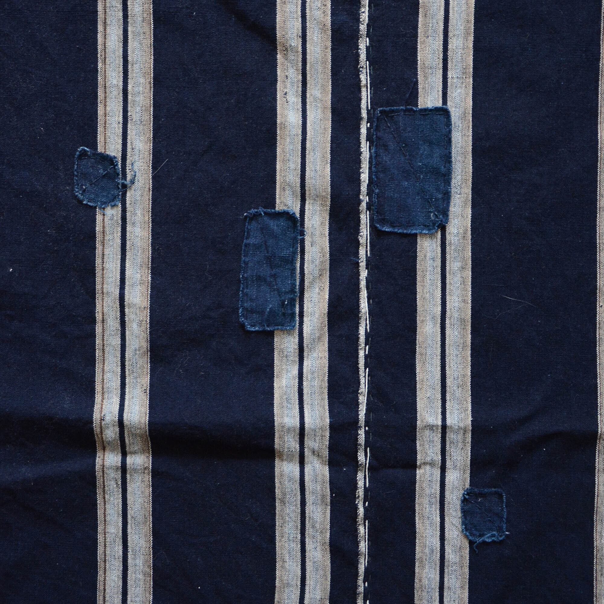 襤褸 古布 藍染 木綿 つぎはぎ 布団皮 縞模様 ジャパンヴィンテージ ファブリック テキスタイル リメイク素材 | boro fabric japan vintage indigo cotton futon textile stripe
