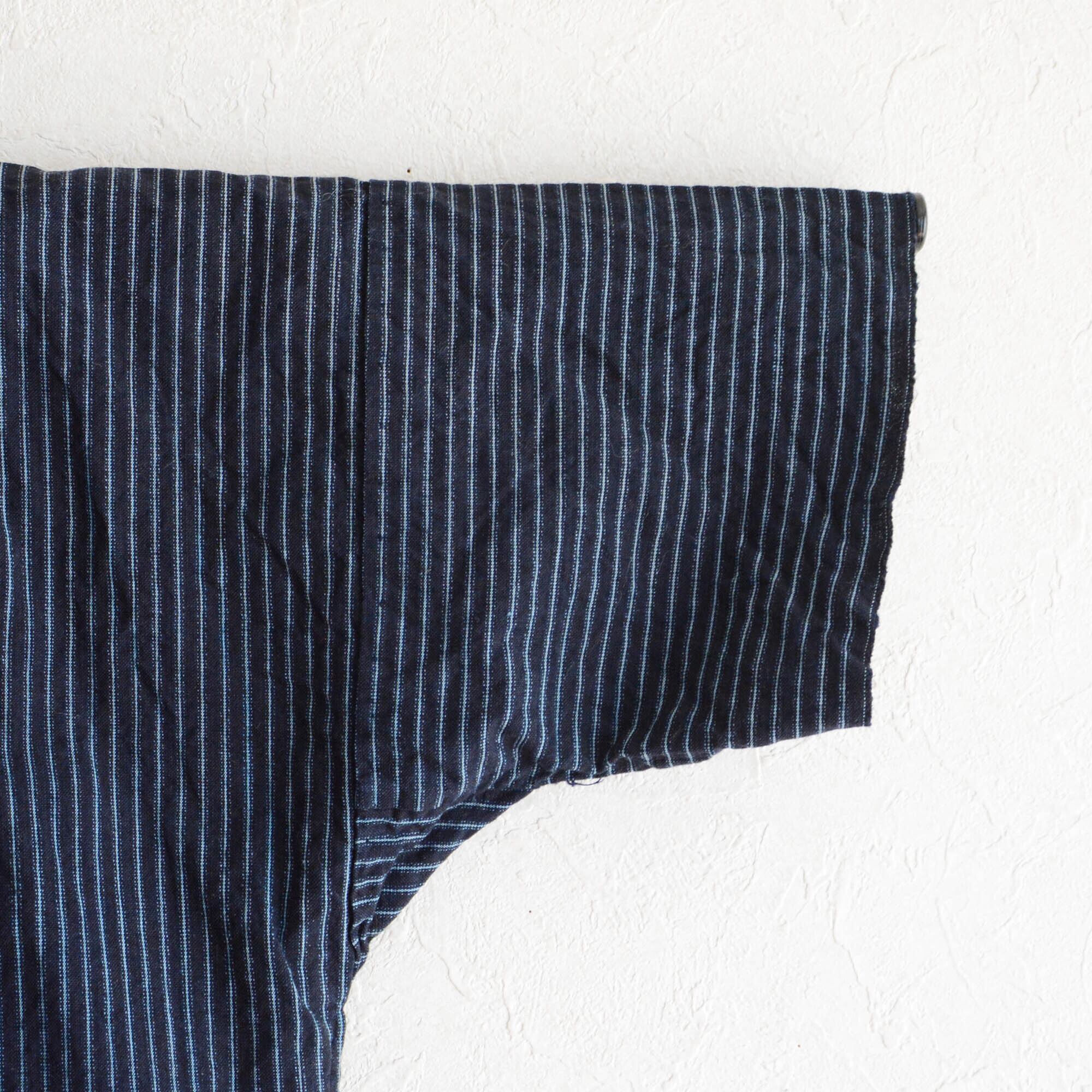 野良着 藍染襟 木綿 着物 古布 縞模様 クレイジーパターン ジャパンヴィンテージ リメイク素材 大正 昭和 | noragi jacket indigo collar kimono cotton japanese fabric vintage stripe crazy pattern