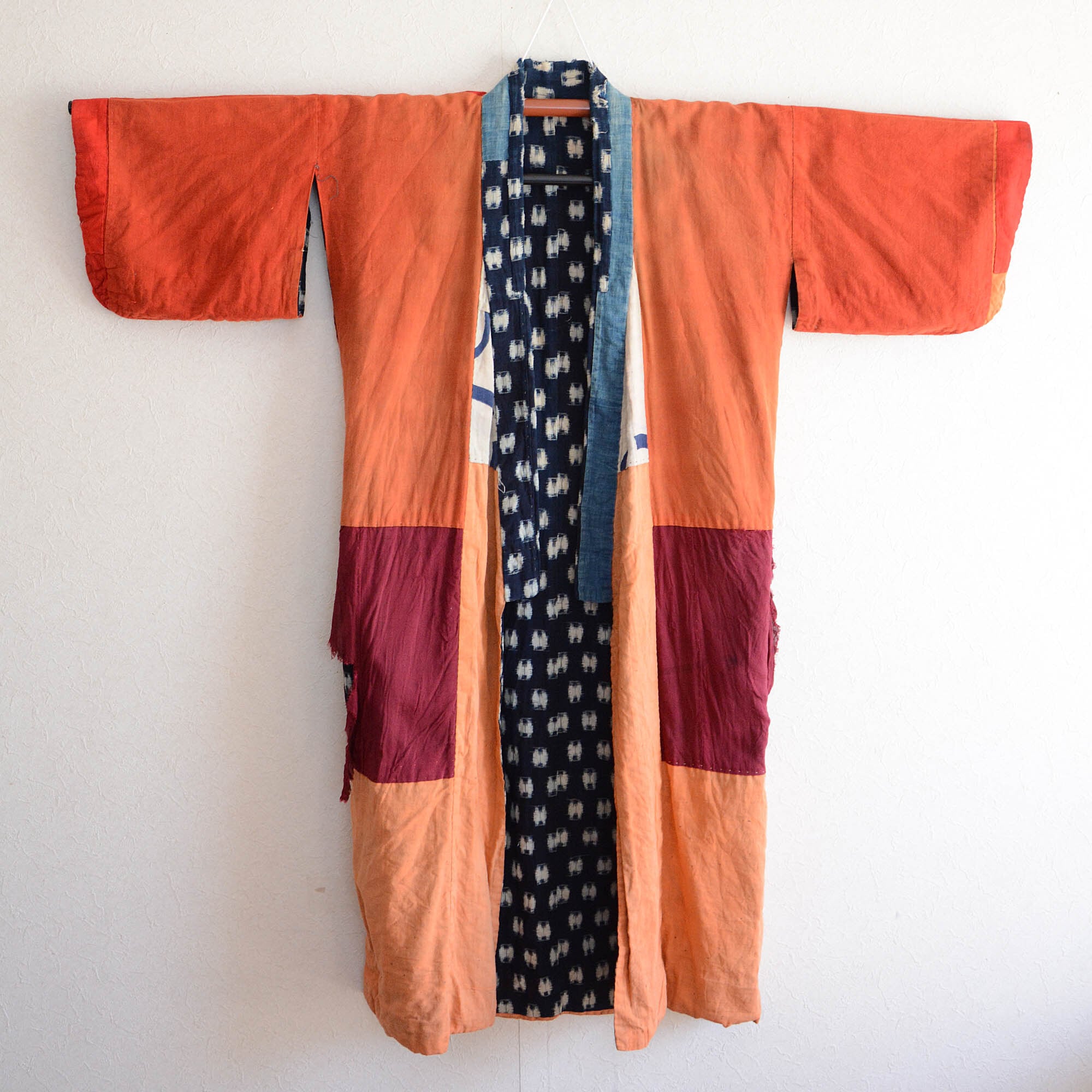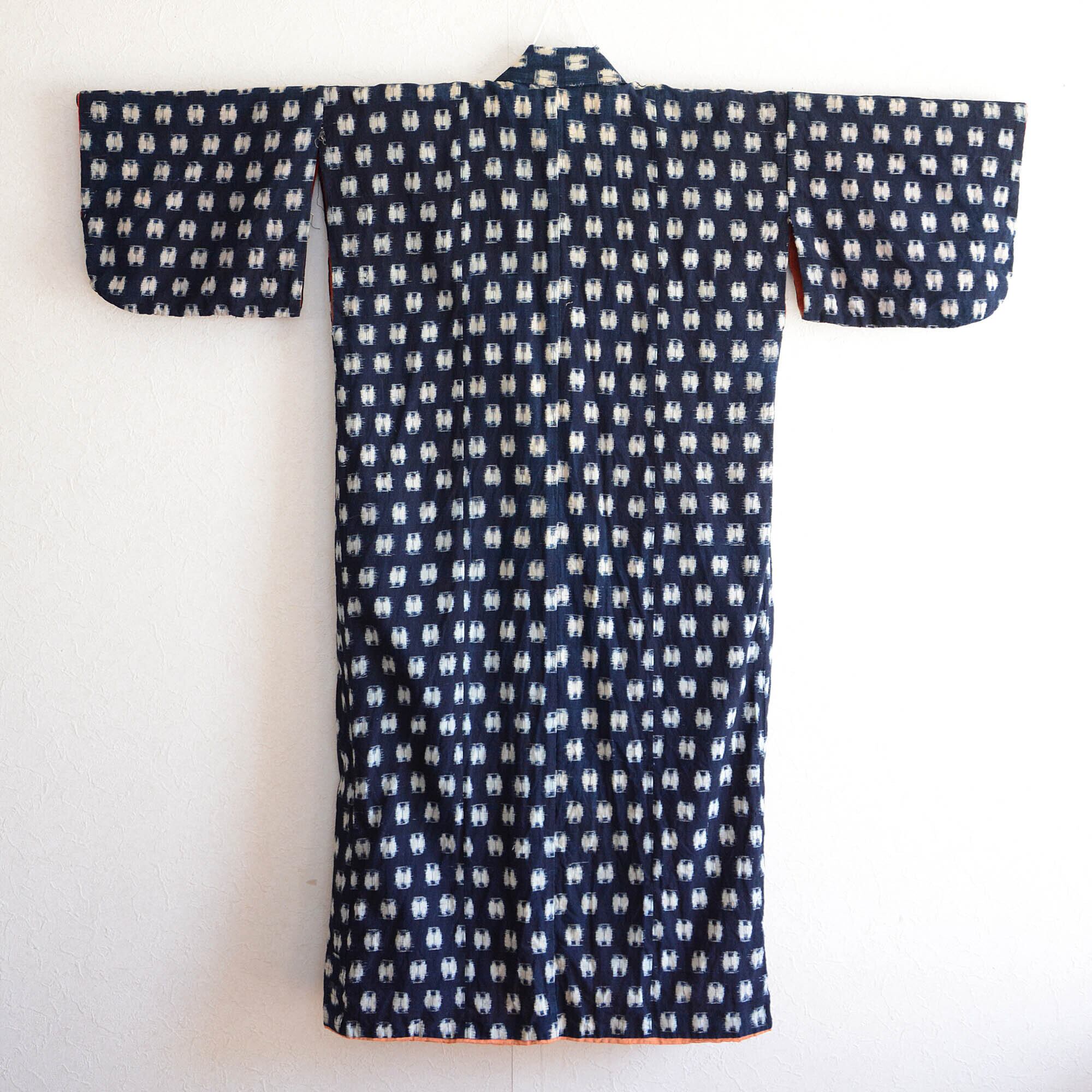 襤褸 着物 藍染 絣 木綿 クレイジーパターン 長着 ジャパンヴィンテージ 昭和 リメイク素材 | boro indigo kimono robe long kasuri crazy pattern japanese fabric vintage cotton