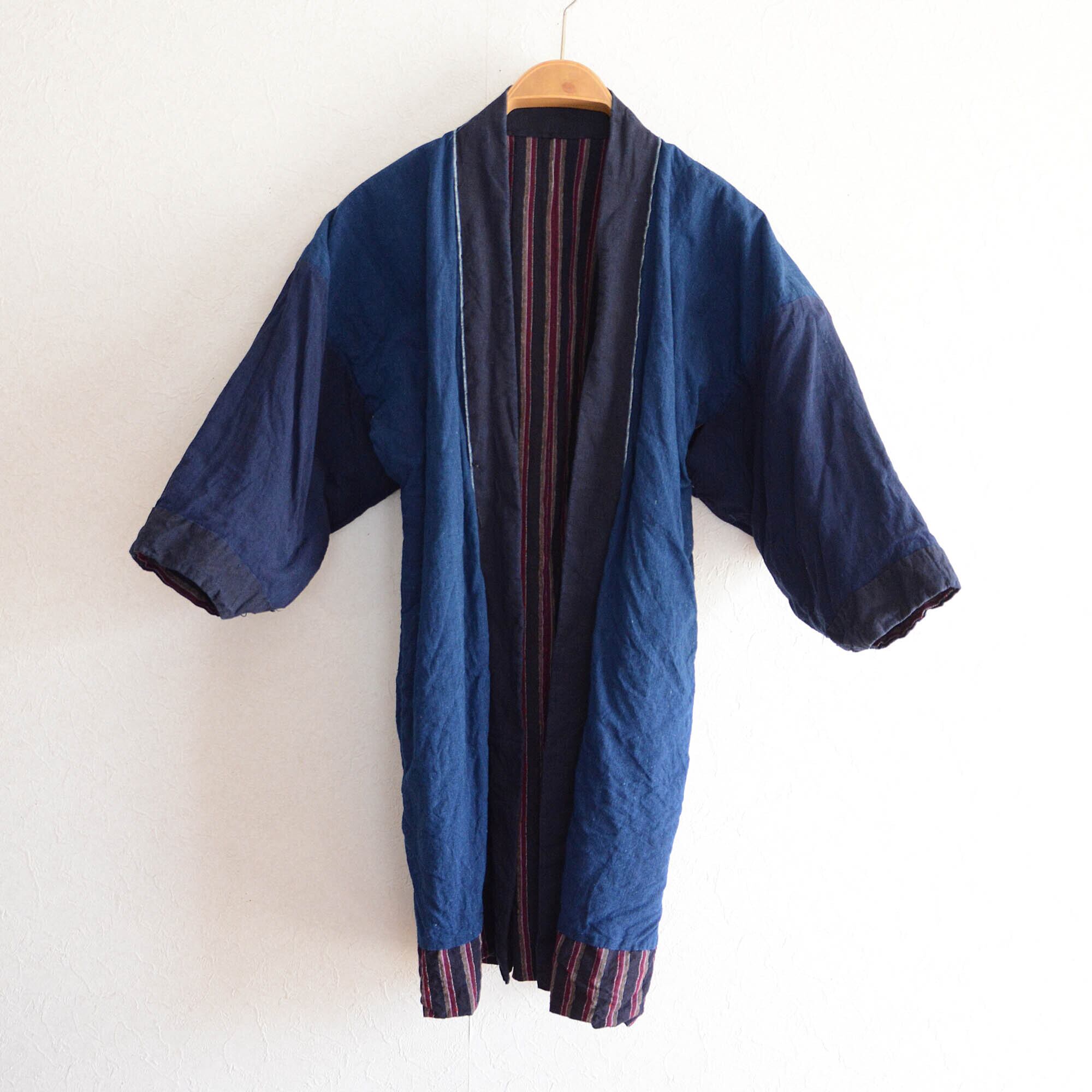 野良着 藍染 木綿 着物 古布 クレイジーパターン 縞模様 ジャパンヴィンテージ リメイク素材 昭和 | noragi jacket indigo kimono cotton japanese fabric vintage crazy pattern stripe