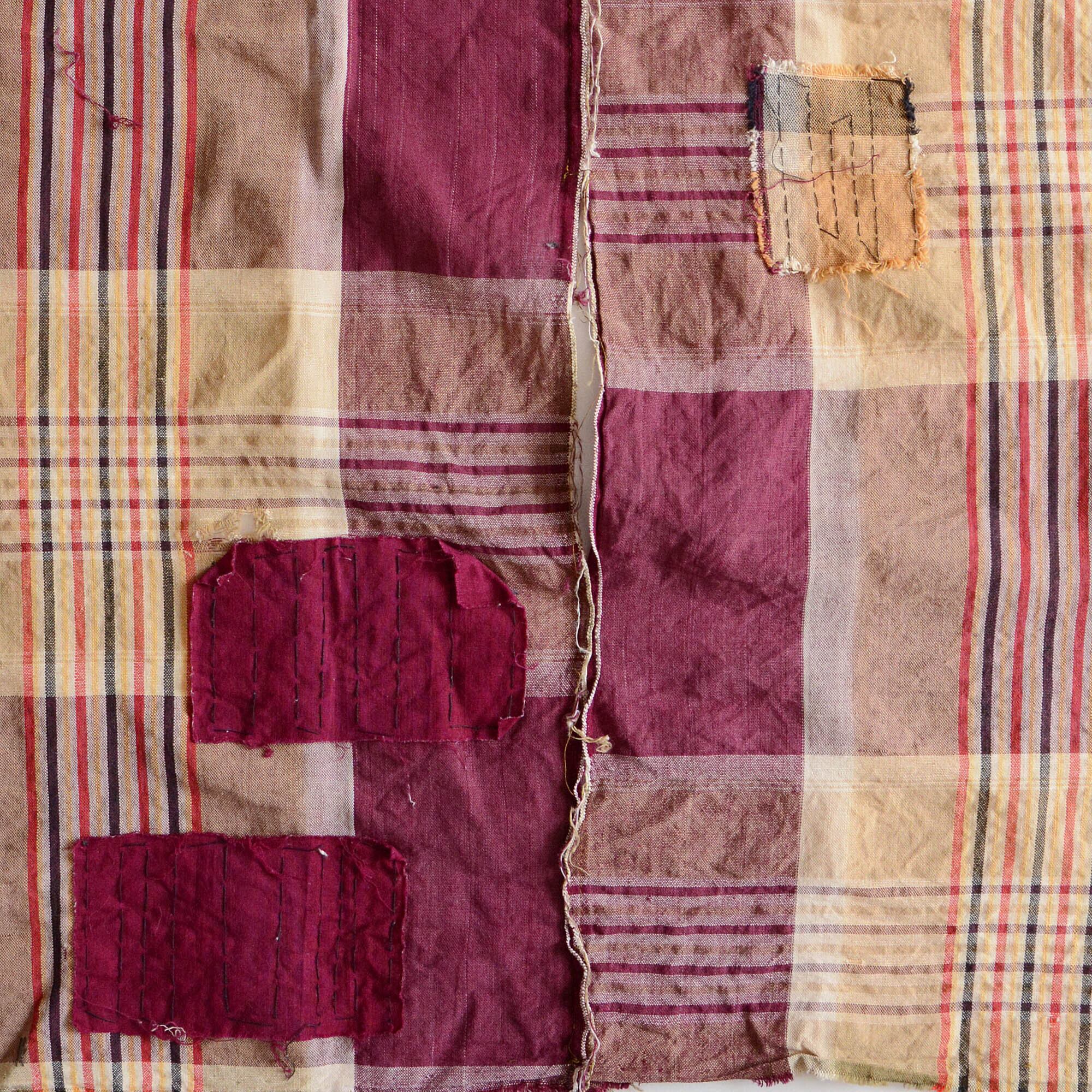 襤褸 古布 木綿 格子模様 布団皮 解き ジャパンヴィンテージ ファブリック テキスタイル リメイク素材 | boro japanese fabric vintage cotton checkered pattern futon cover textile cloth