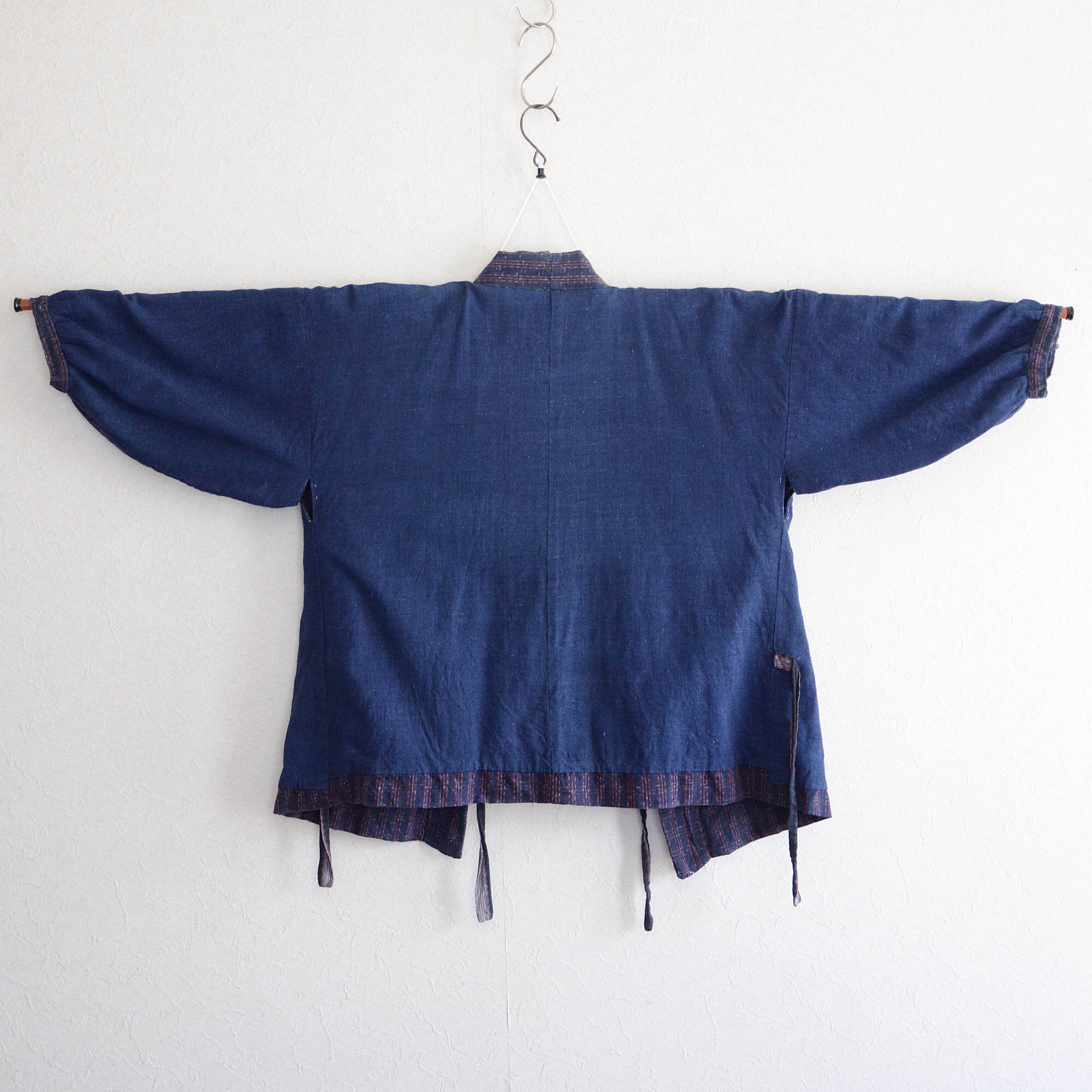 野良着 藍染 格子模様 木綿 着物 古布 ジャパンヴィンテージ リメイク素材 昭和 上っ張り | Noragi Jacket Indigo Dyed Kimono Japanese Fabric Cotton Vintage Uwappari