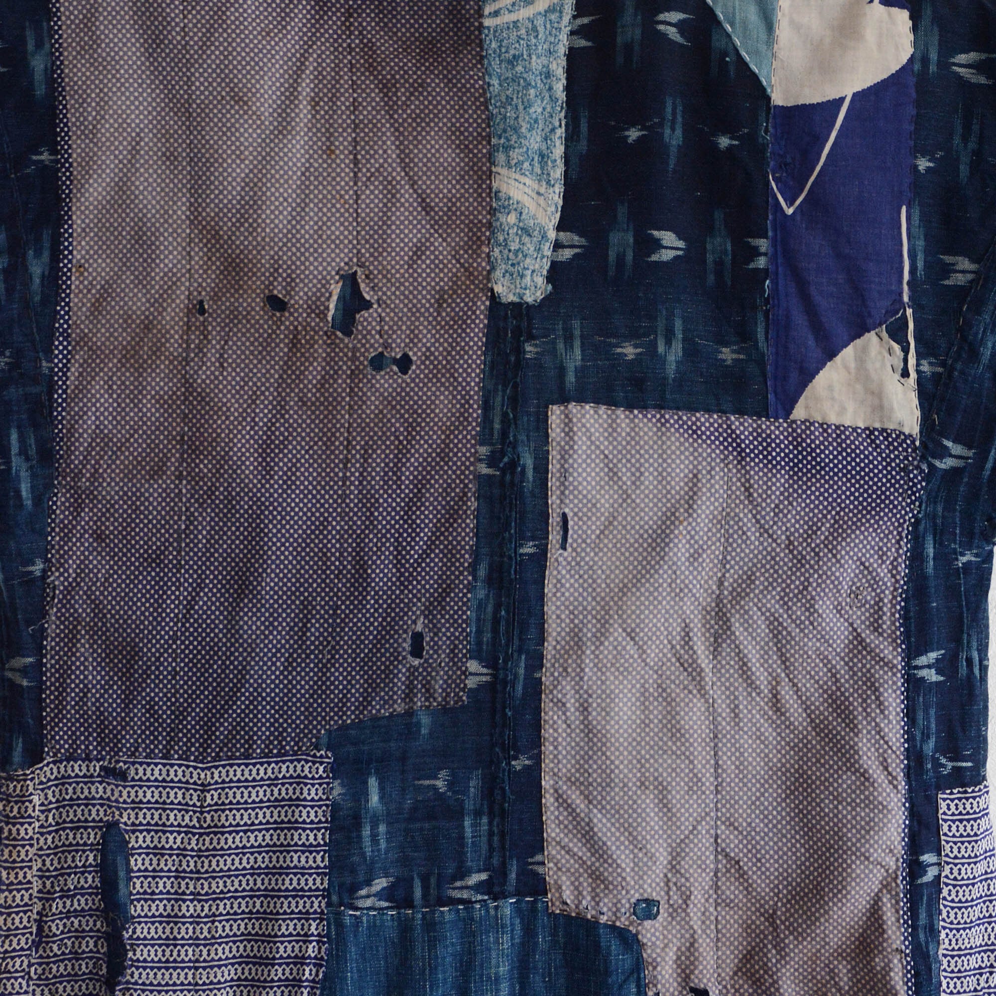 襤褸 野良着 古着 藍染 木綿 麻 着物 古布 絣 絞りジャパンヴィンテージ リメイク素材 クレイジーパターン | Boro Noragi Jacket Indigo Japanese Fabric Vintage Kimono Cotton Crazy Pattern Kasuri Shibori Dye
