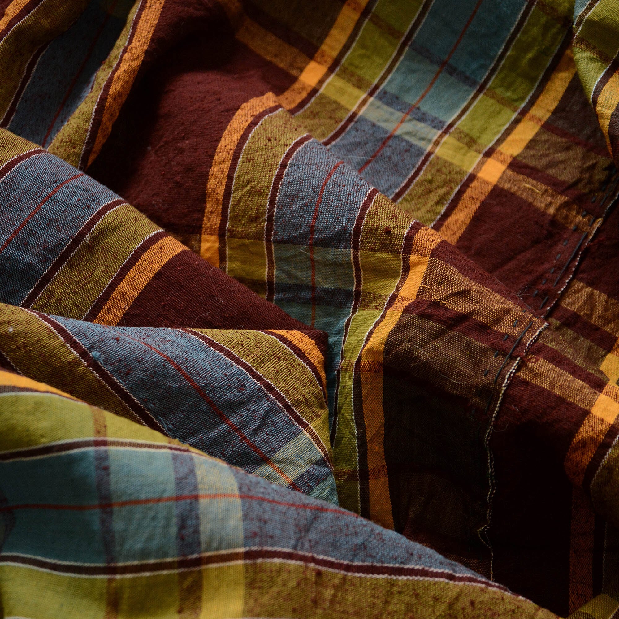 古布 木綿 布団皮 リメイク素材 格子模様 ジャパンヴィンテージ ファブリック テキスタイル 昭和レトロ 1 | Japanese Fabric Vintage Cotton Futon Cover Checkered Pattern Textile