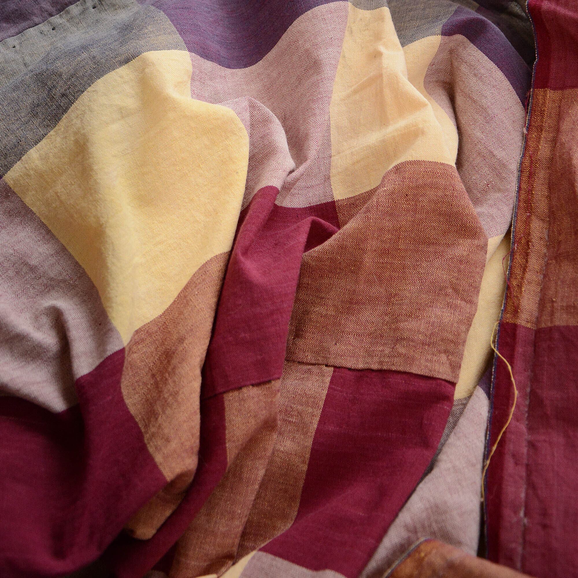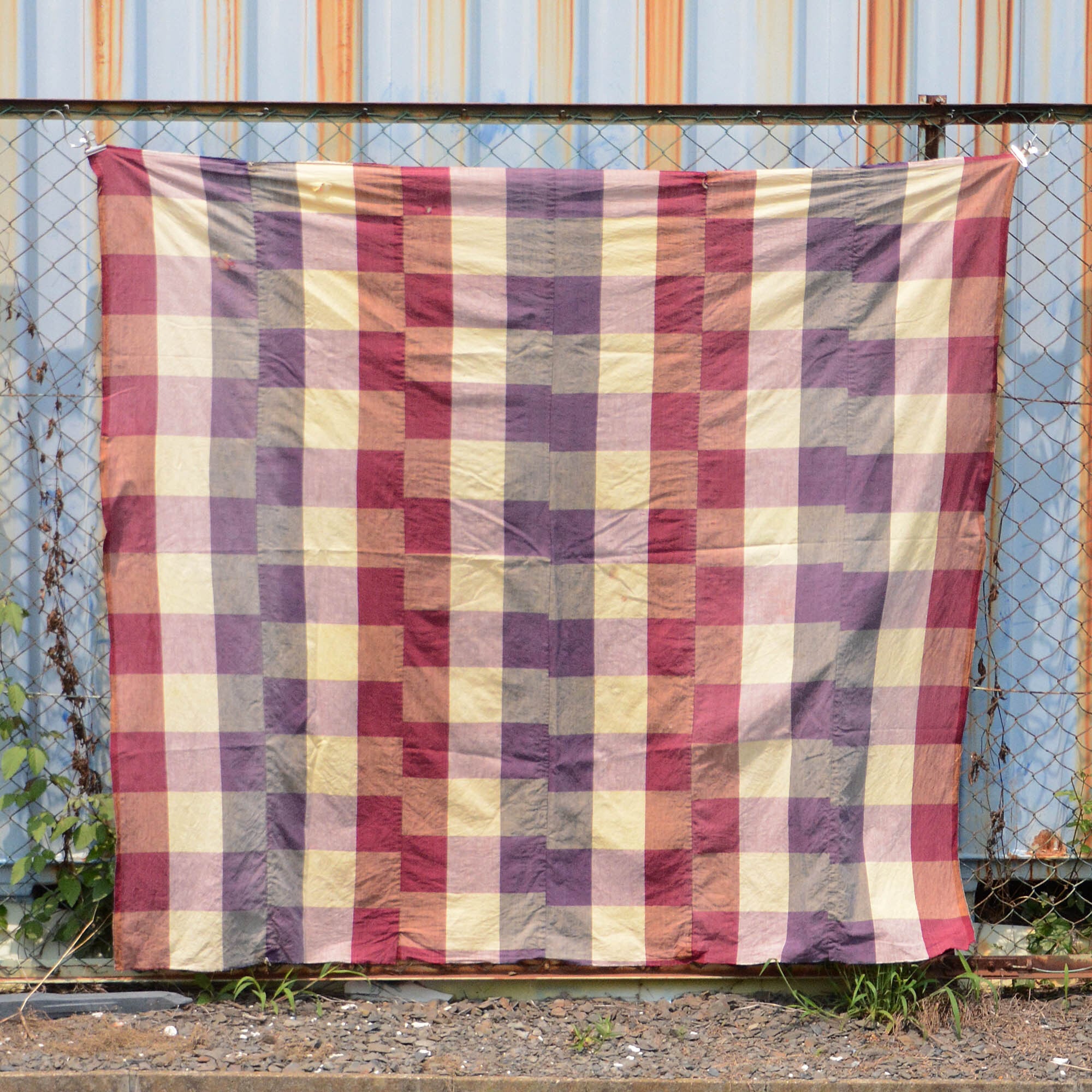 古布 木綿 布団皮 リメイク素材 格子模様 解き ジャパンヴィンテージ ファブリック テキスタイル 昭和レトロ | Japanese Fabric Cotton Vintage Checkered Pattern Futon Cover Textile Cloth