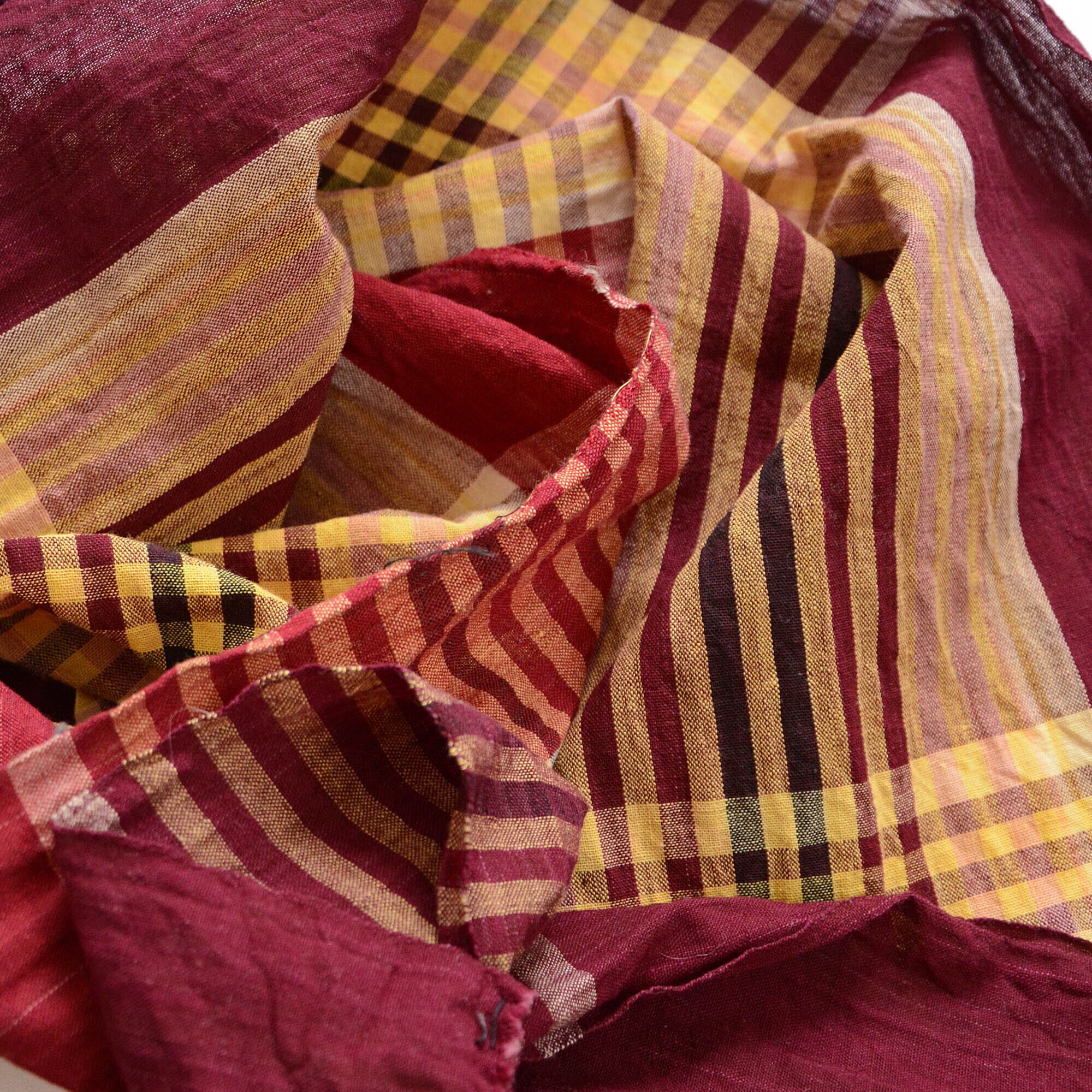 布団皮を解いた物で、生地は手織り、天然染料で染められており、生地の質感がとても良いです。
