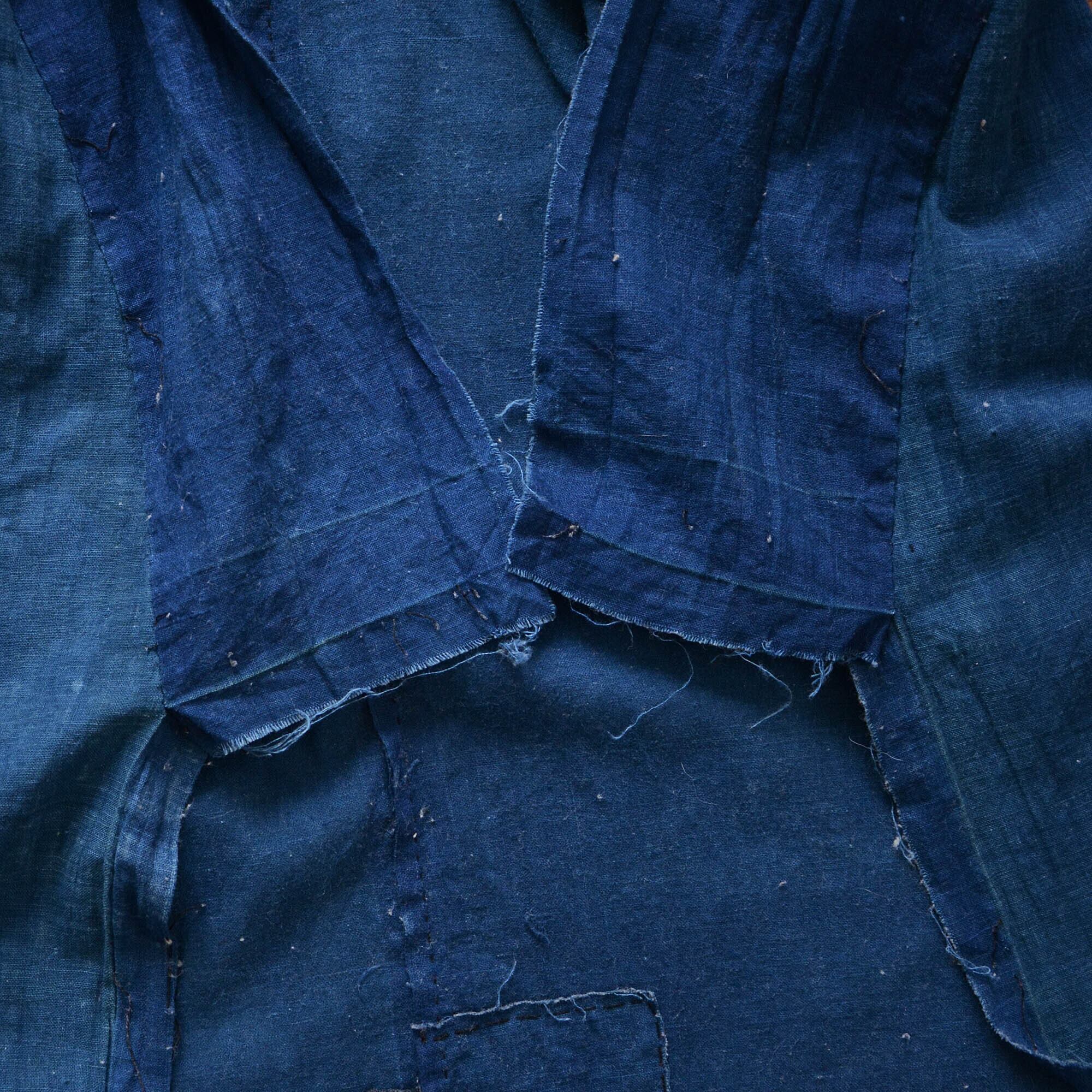 This is the lining of a nightgown (tanzen) with a beautiful indigo dye color.