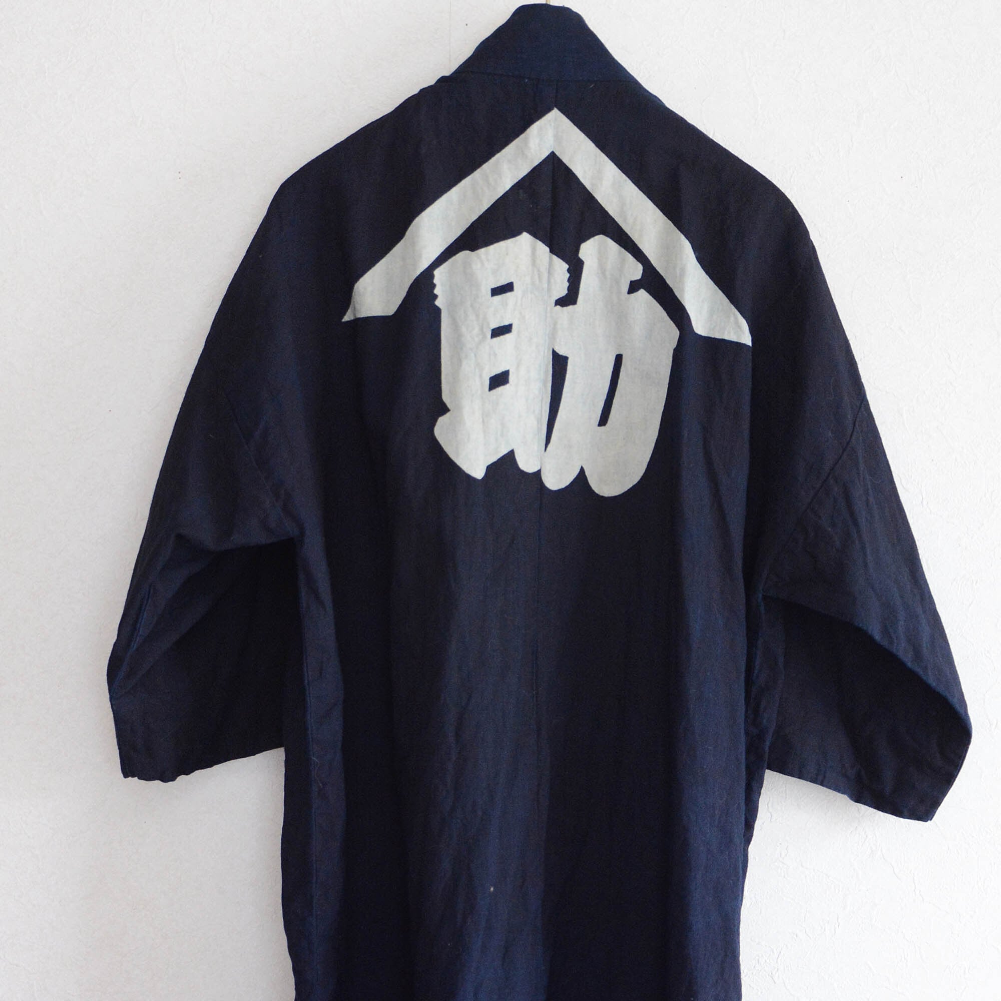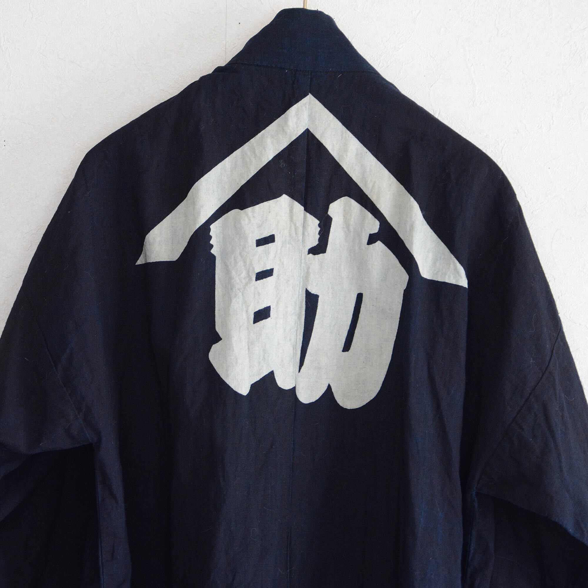 印半纏 藍染 法被 着物 木綿 古布 リメイク素材 昭和レトロ ジャパンヴィンテージ 大紋 赤湯 4 | Happi Coat Men Hanten Jacket Indigo Kimono Cotton Japanese Fabric Vintage Kanji 4
