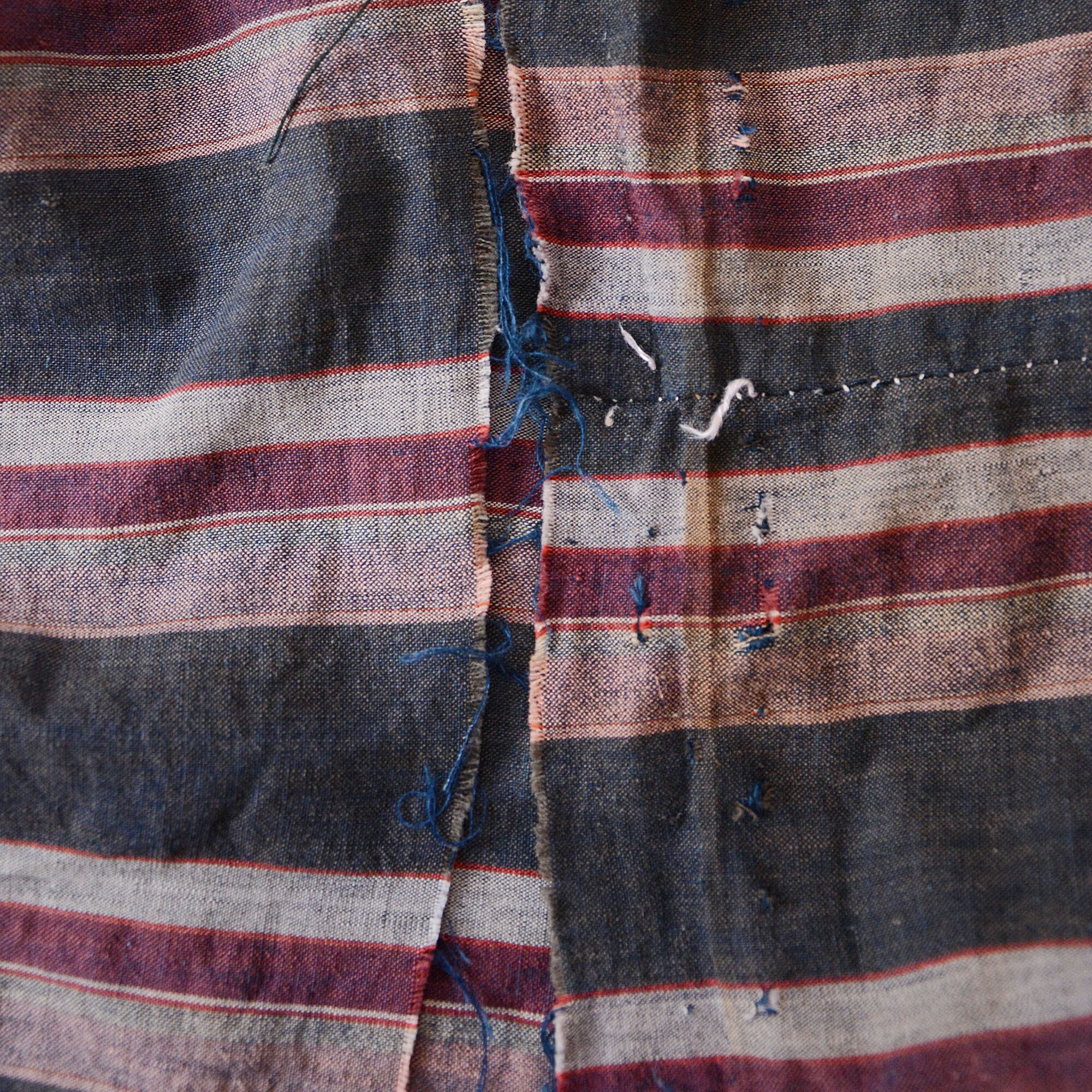 The hand-sewn repairs, the faded color, and the texture of the cotton are wonderful.