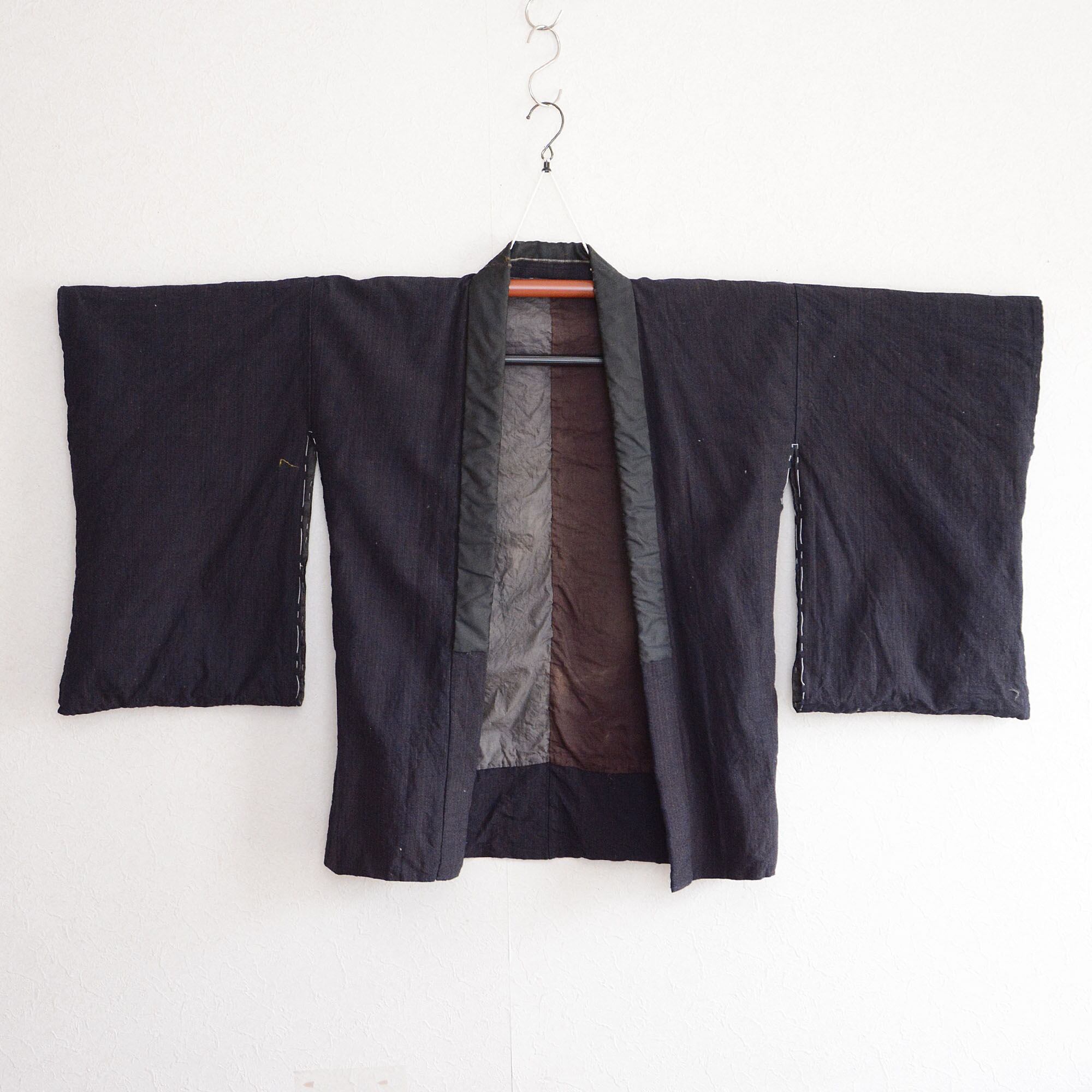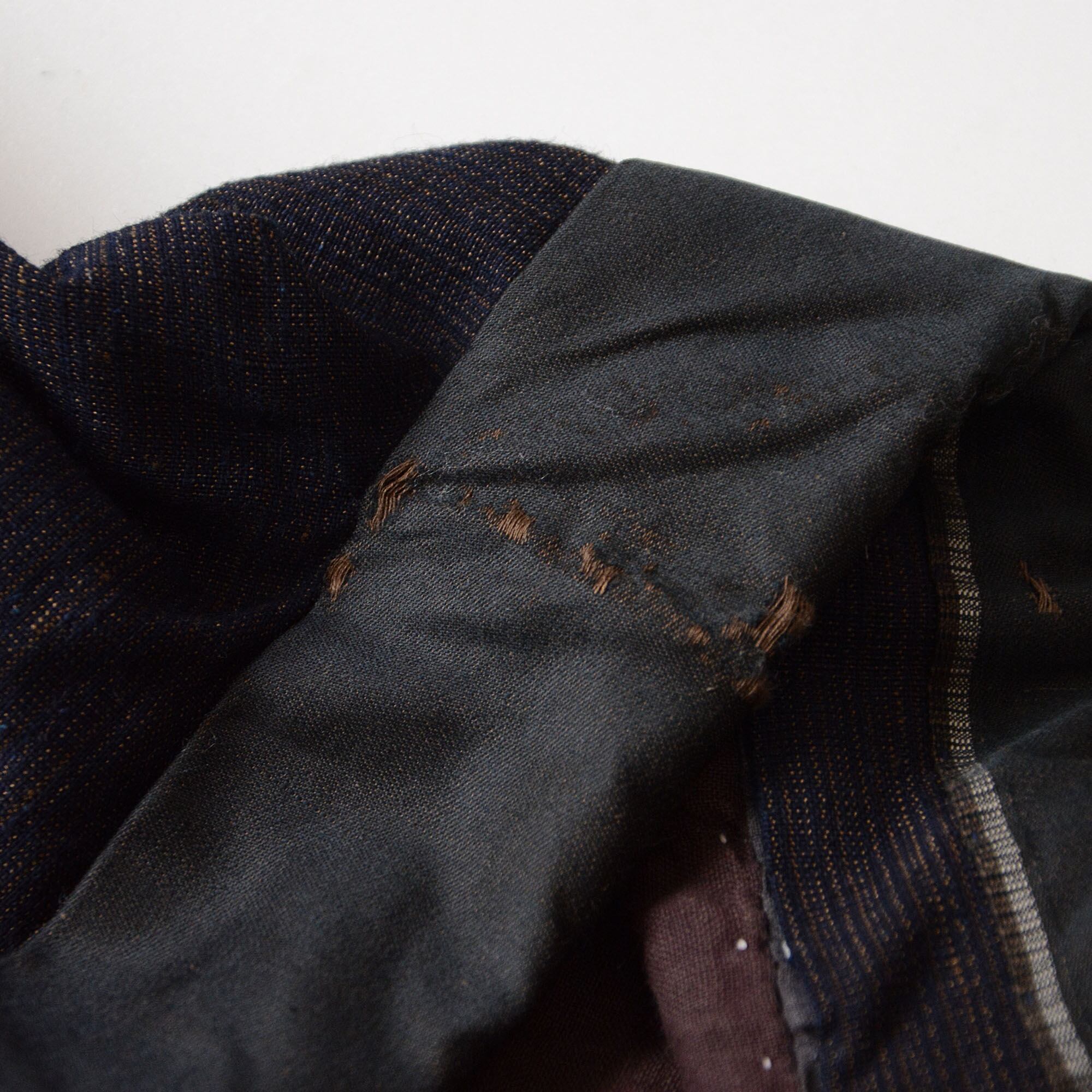 着物 仕事着 クレイジーパターン 藍染 縞模様 ジャパンヴィンテージ 古着 古布 リメイク素材 大正 昭和 | Kimono Jacket Japanese Fabric Vintage Crazy Pattern Indigo Stripe