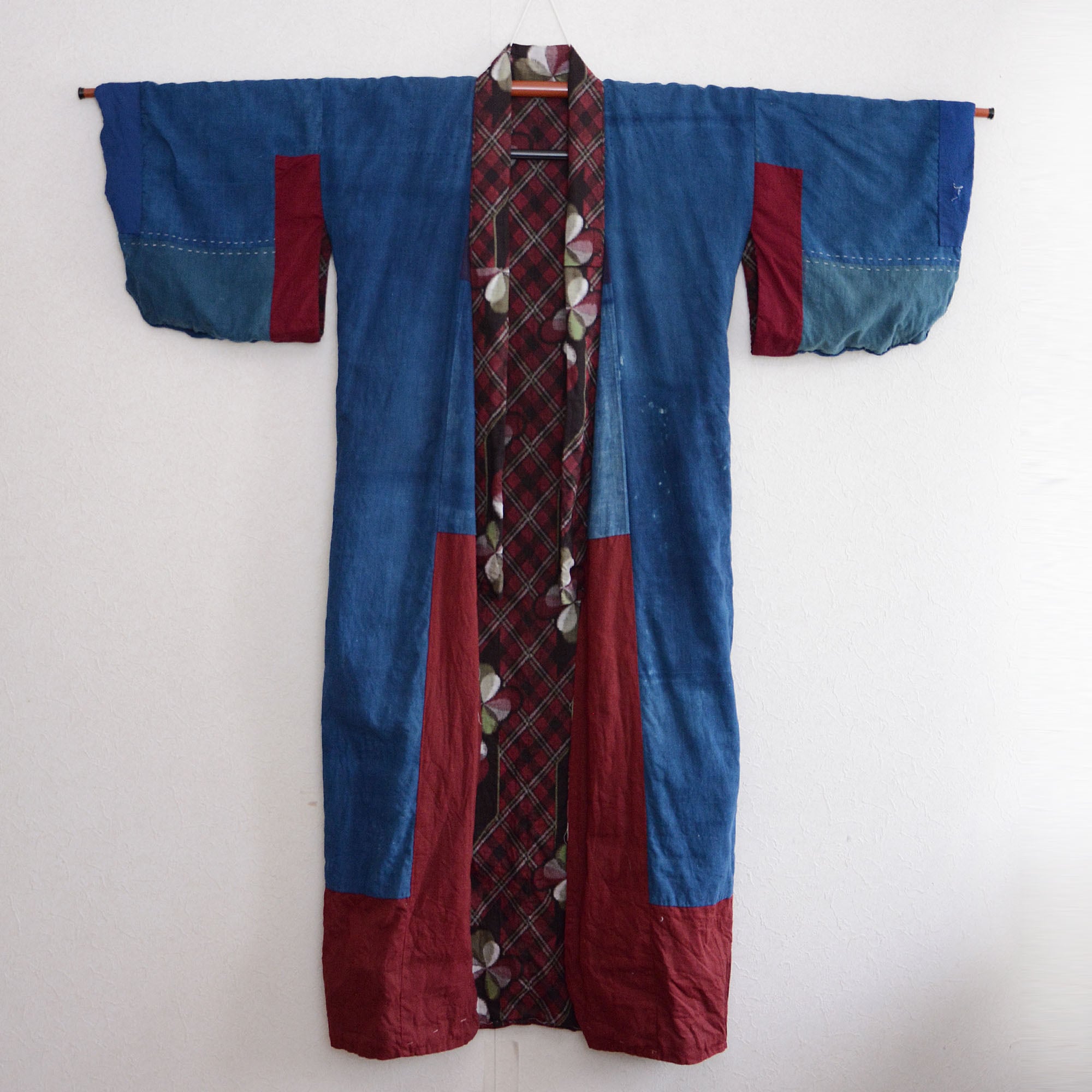 着物 木綿 藍染 ジャパンヴィンテージ ローブ 古着 古布 リメイク素材 昭和レトロ | Kimono Robe Women Long Japanese Fabric Vintage Indigo