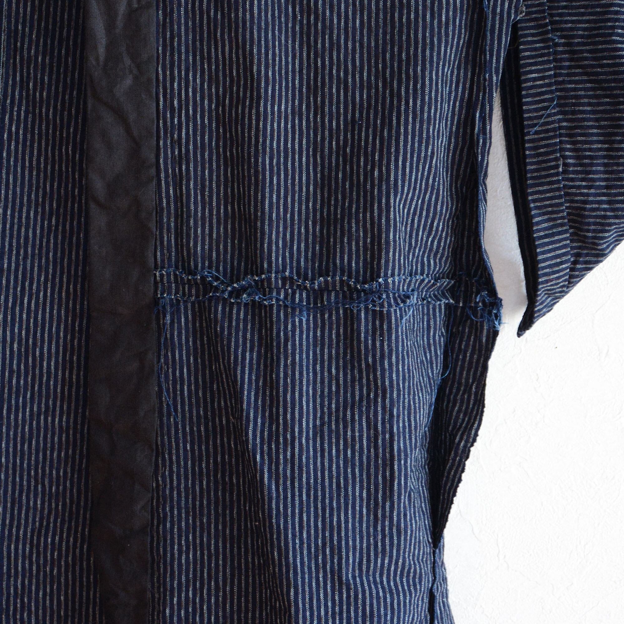 野良着 古着 藍染 木綿 着物 古布 縞模様 手ぬぐい ジャパンヴィンテージ リメイク素材 | Noragi Jacket Indigo Kimono Japanese Fabric Cotton Vintage Stripe Pattern Tenugui