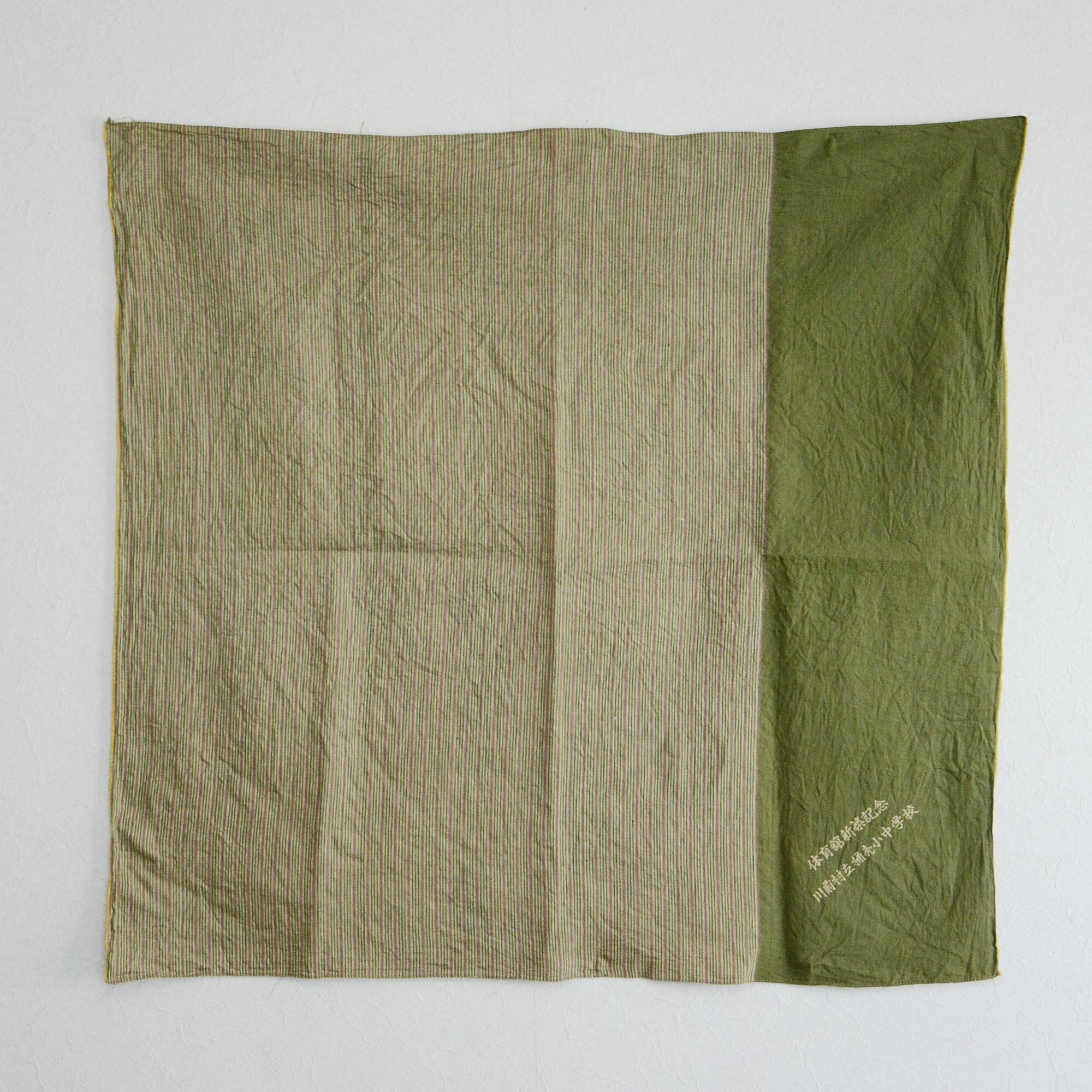 風呂敷 古布 木綿 リメイク素材 漢字 縞模様 ジャパンヴィンテージ 昭和レトロ 生地 川前村立桶売小中学校 | Furoshiki Wrapping Cloth Japanese Fabric Cotton Vintage Stripe Pattern Kanji