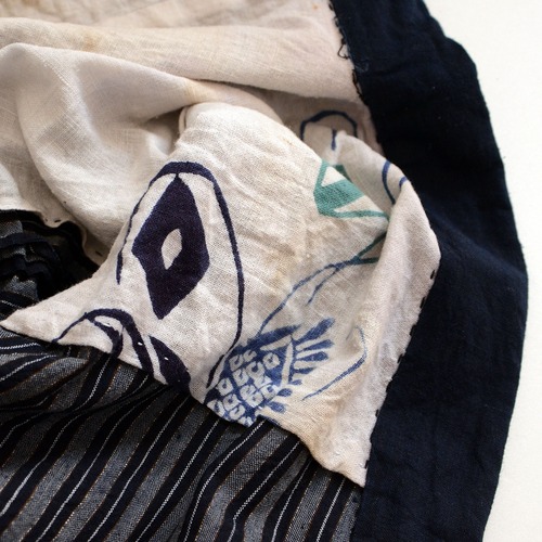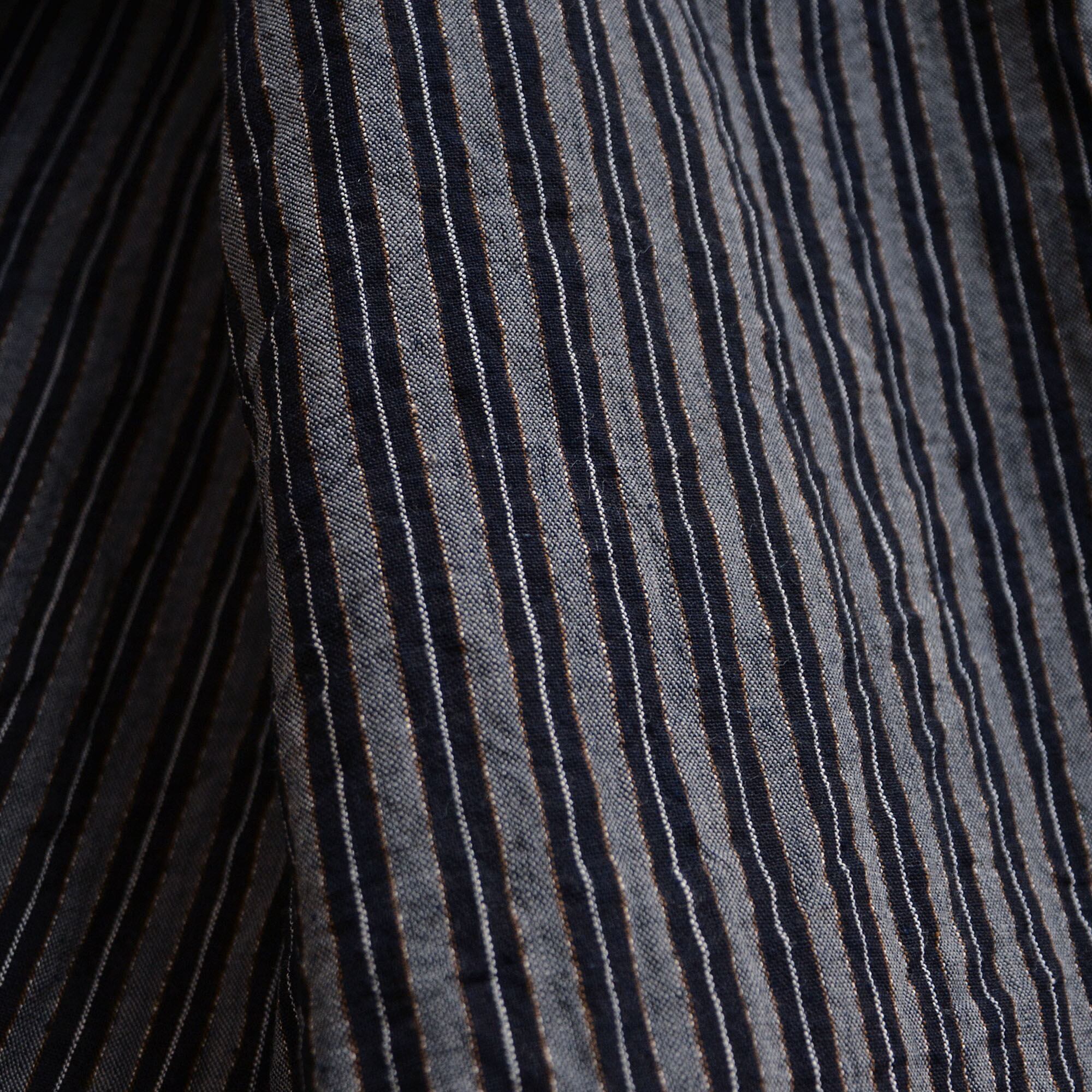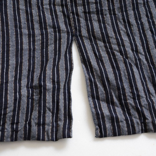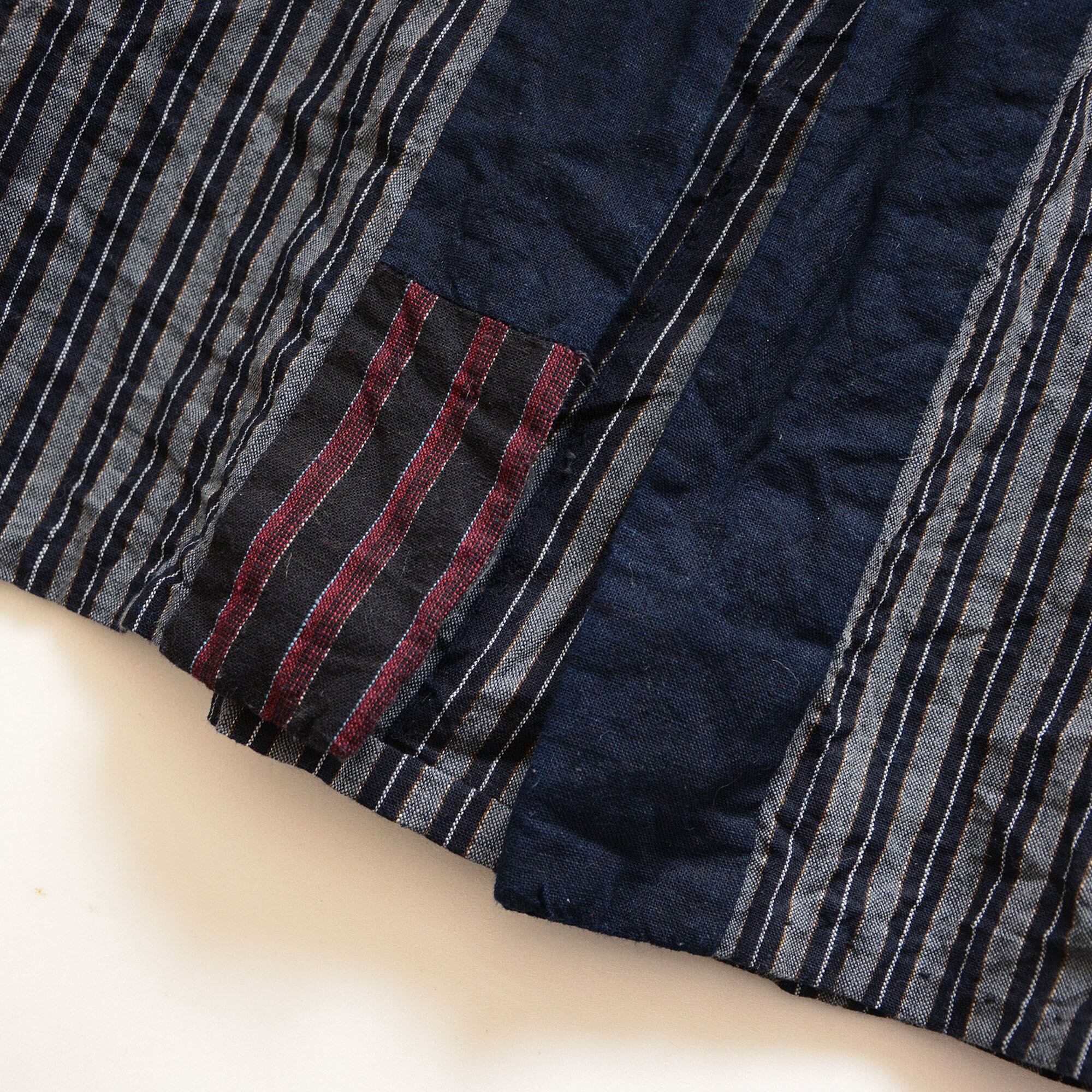 The contrast between the indigo-dyed collar and the striped body is excellent, and the crazy pattern made with a different fabric for only part of the collar is also great.