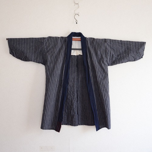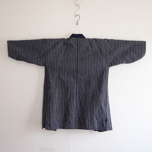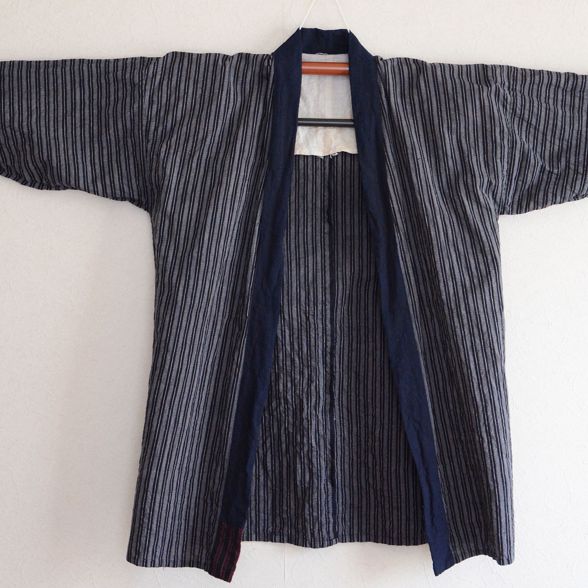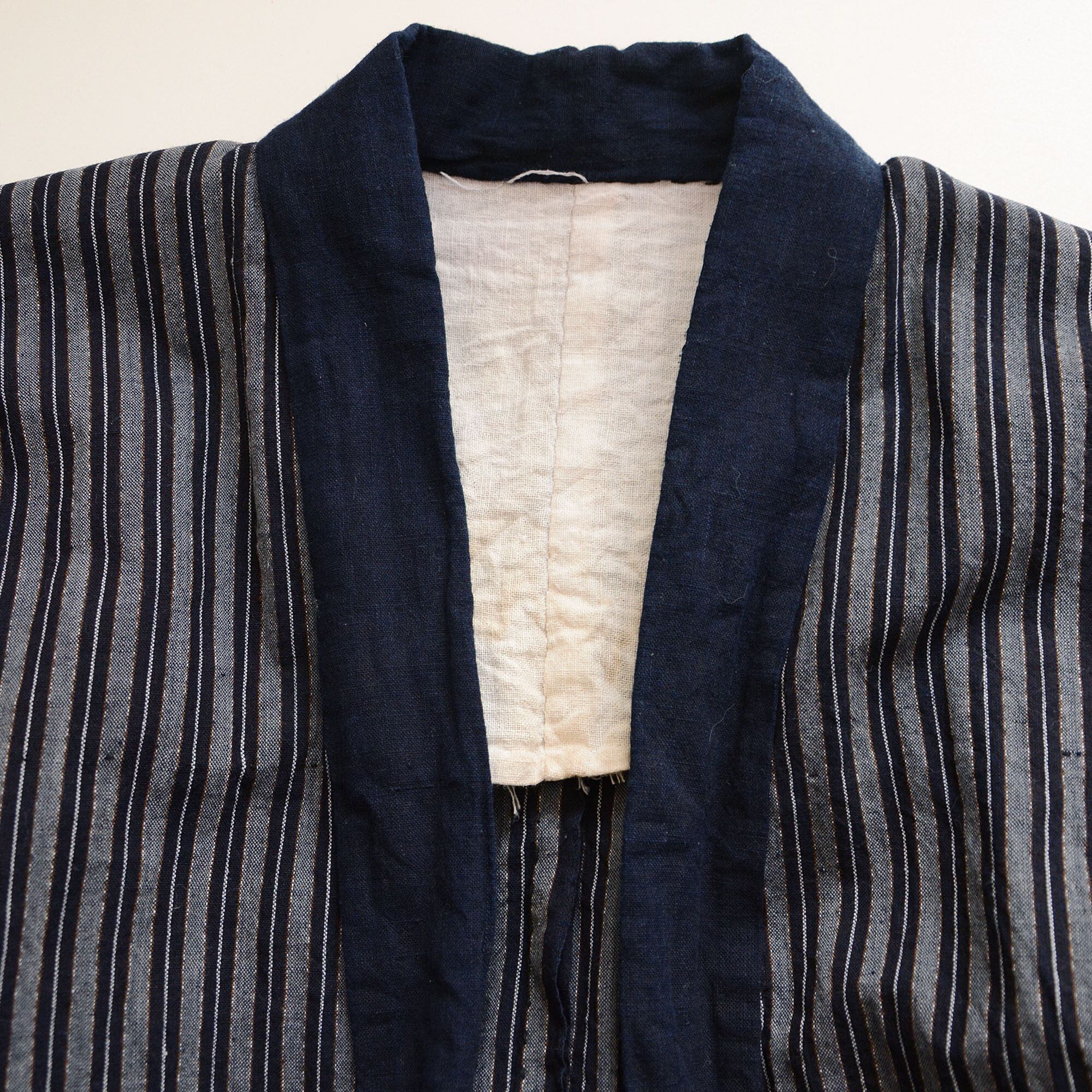 藍染襟と縞模様のボディコントラストが秀逸ですし、襟の一部だけ異なる生地が使用され、クレイジーパターンになっているのも最高です。