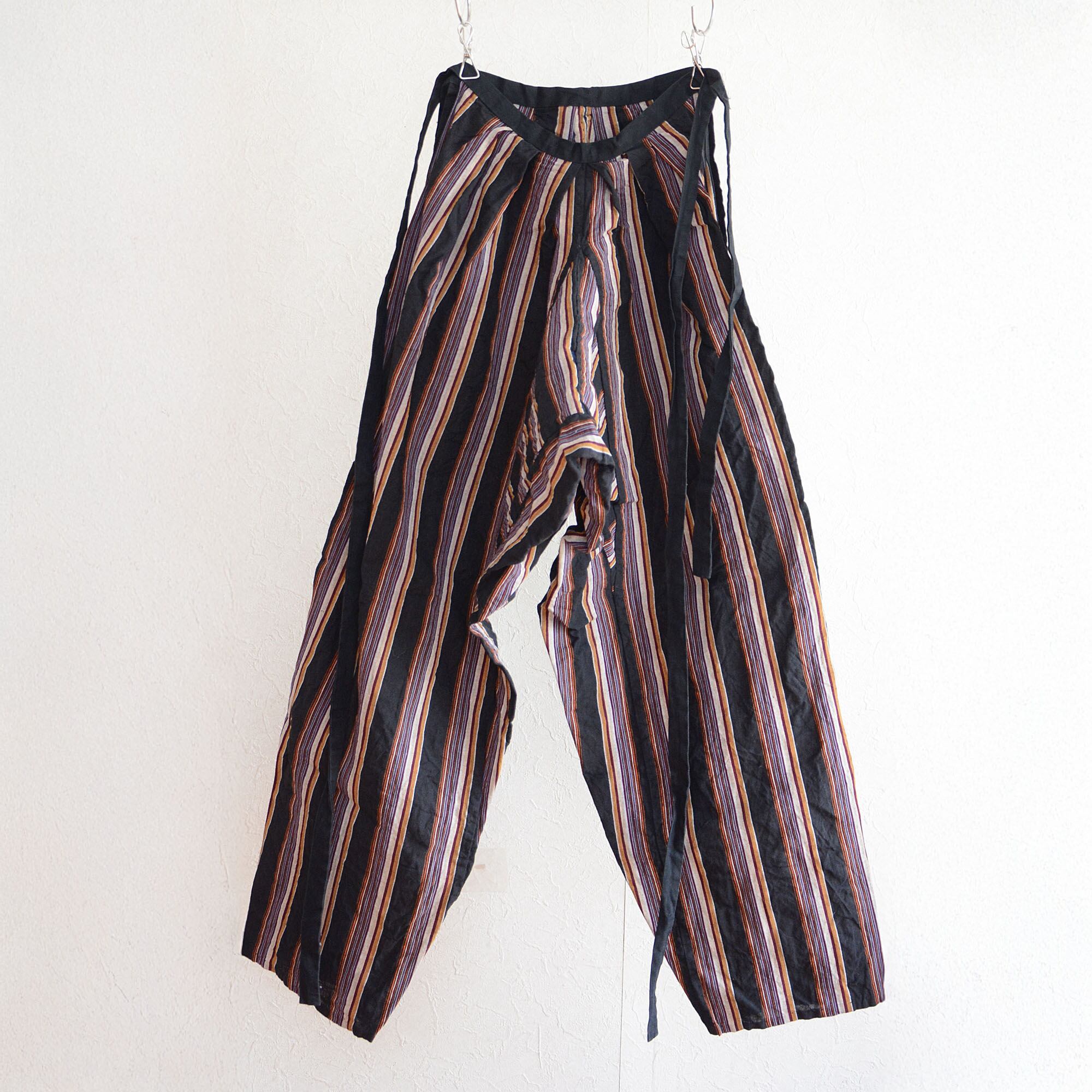 もんぺ パンツ 野良着 木綿 古布 黒縞模様 作業用ボトムス リメイク素材 ジャパンヴィンテージ 昭和レトロ | Monpe Pants Noragi Japanese Fabric Cotton Stripe Pattern Vintage