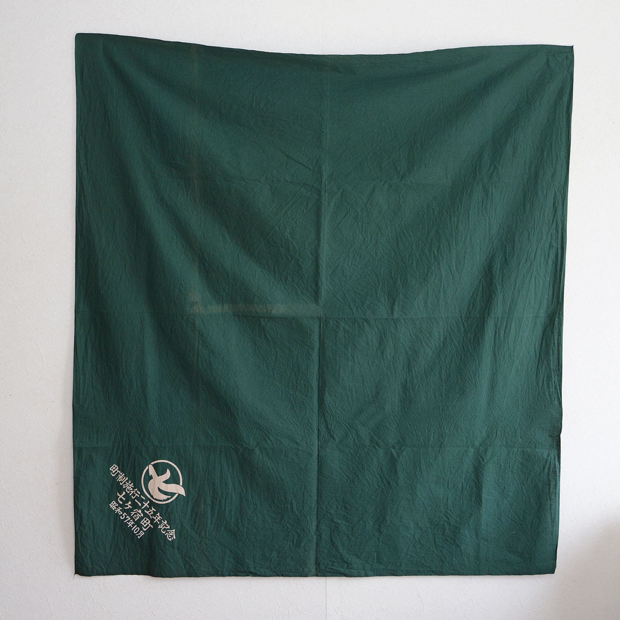 風呂敷 古布 木綿 リメイク素材 生地 漢字 七ヶ宿町 日焼け 緑 ジャパンヴィンテージ 昭和レトロ | Furoshiki Wrapping Cloth Japanese Fabric Cotton Vintage Kanji Sunburn Green