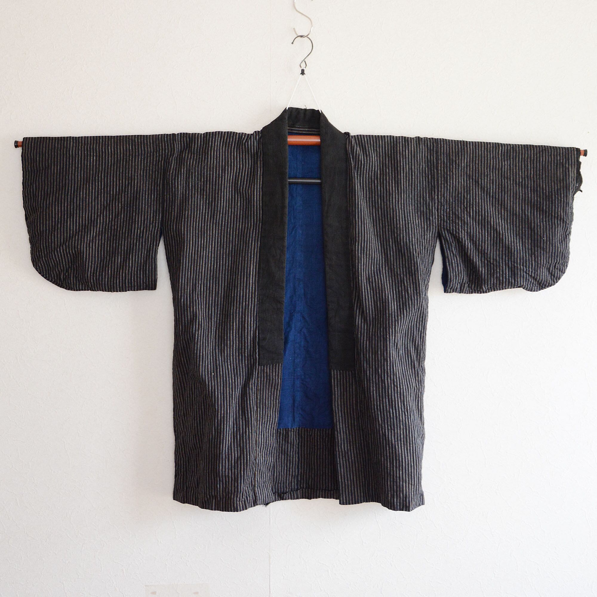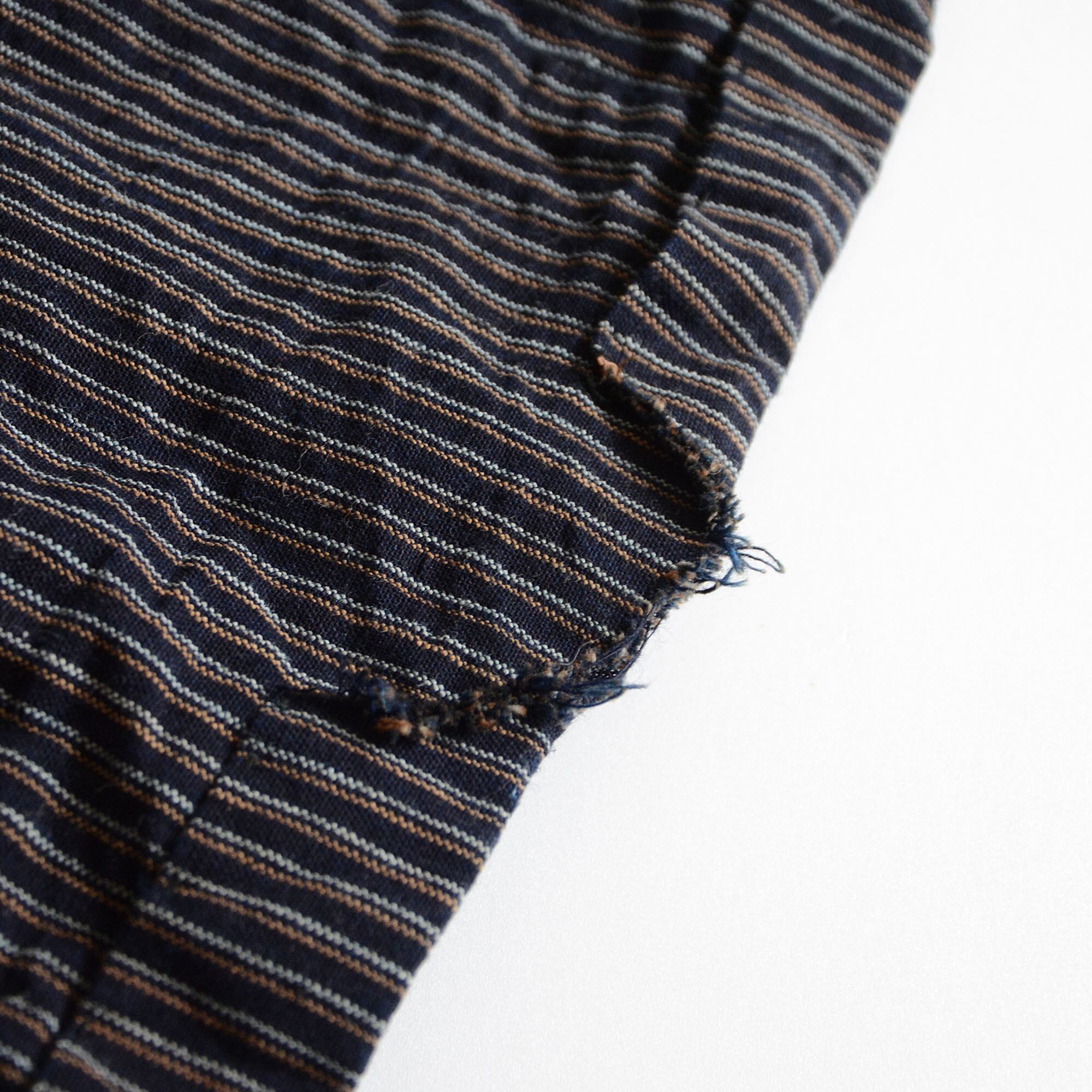 【美しい藍無地が魅力の野良着】 古布 木綿 着物 縞模様 ジャパンヴィンテージ リメイク素材 古着 大正 昭和レトロ | Noragi Jacket Indigo Lining Kimono Japanese Fabric Cotton Vintage Stripe Pattern